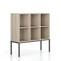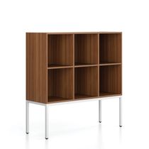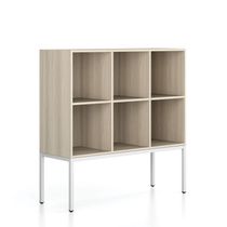 Aby umieścić teczki lub obiekty wystawowe, przestrzeń do przechowywania można powiększyć za pomocą niskich i wysokich otwartyh regałów FRAME. Szafy i regały FRAME wykonane są z wysokiej jakości płyty wiórowej laminowanej o grubości 18 mm i oklejonej obrzeżem ABS o grubości 1 mm. Wybrane szafki i regały dostępne są także w wariantach z białą i czarną metalową podstawą.