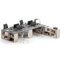 Zestaw składa się z: 3x szafka niska otwarta długa, 2x kontener biurowy z 4 szufladami, 4x blat 1800x800 mm