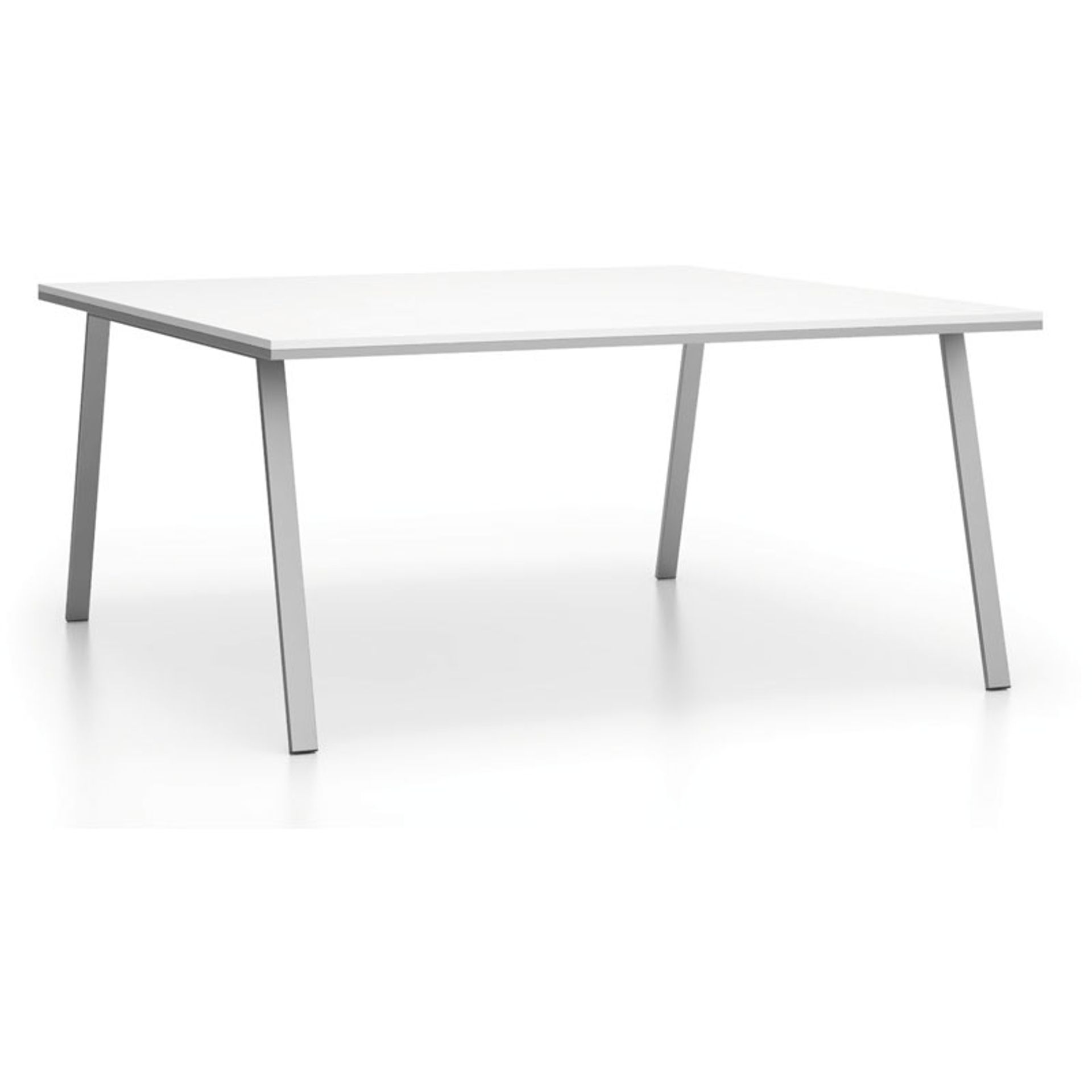 Stoły konferencyjne DOUBLE LAYERS mają szerokość 1600 mm i głębokość 1600 mm, co zapewnia optymalne warunki do spotkań firmowych, burzy mózgów i całodziennej pracy dwóch współpracowników. Zapewnia dużo miejsca na komputer, laptop, artykuły biurowe i przekąski. Blat z płyty wiórowej laminowanej oklejony jest obrzeżem ABS o grubości 1 mm w tym samym dekorze, co nadaje całemu blatowi jednolity wygląd.