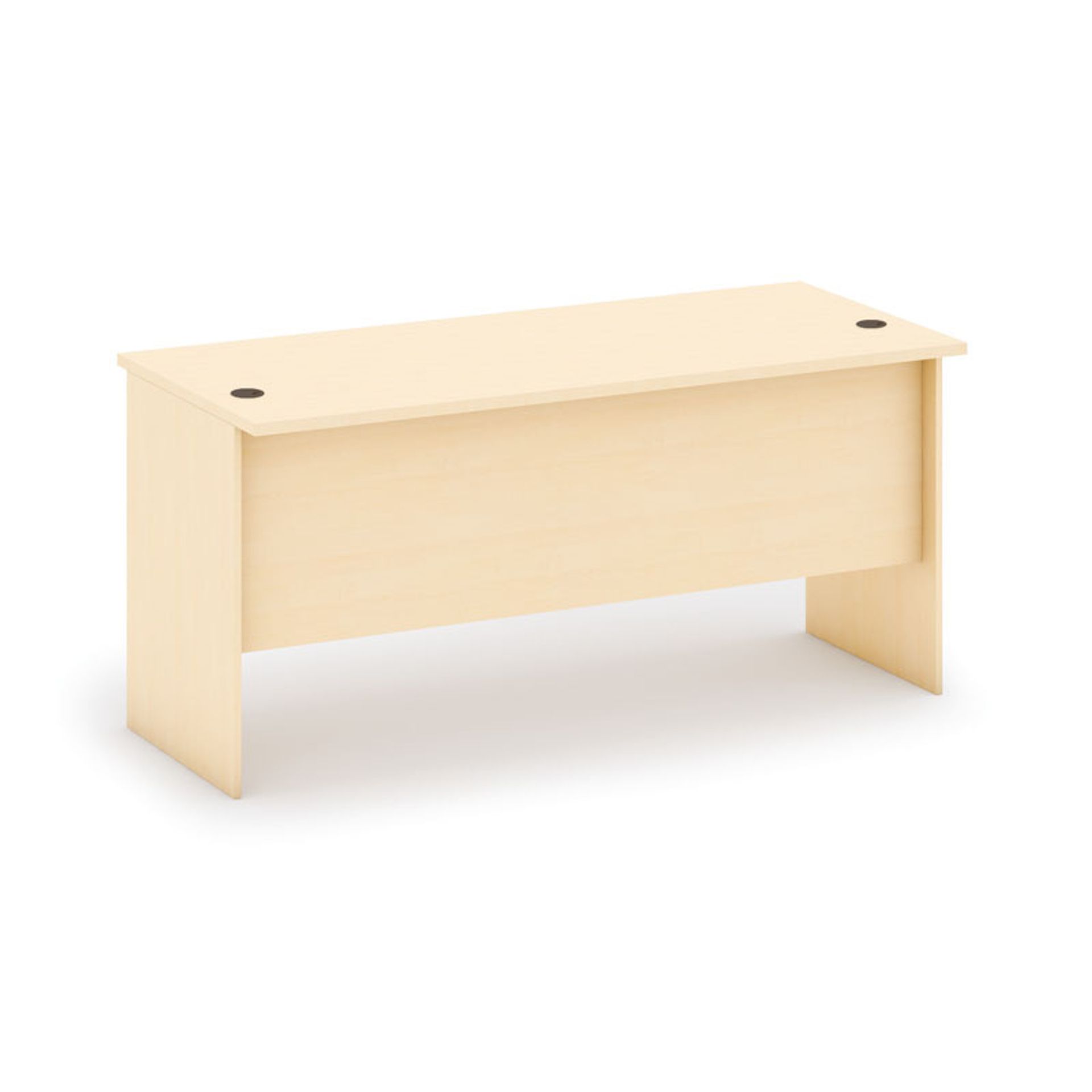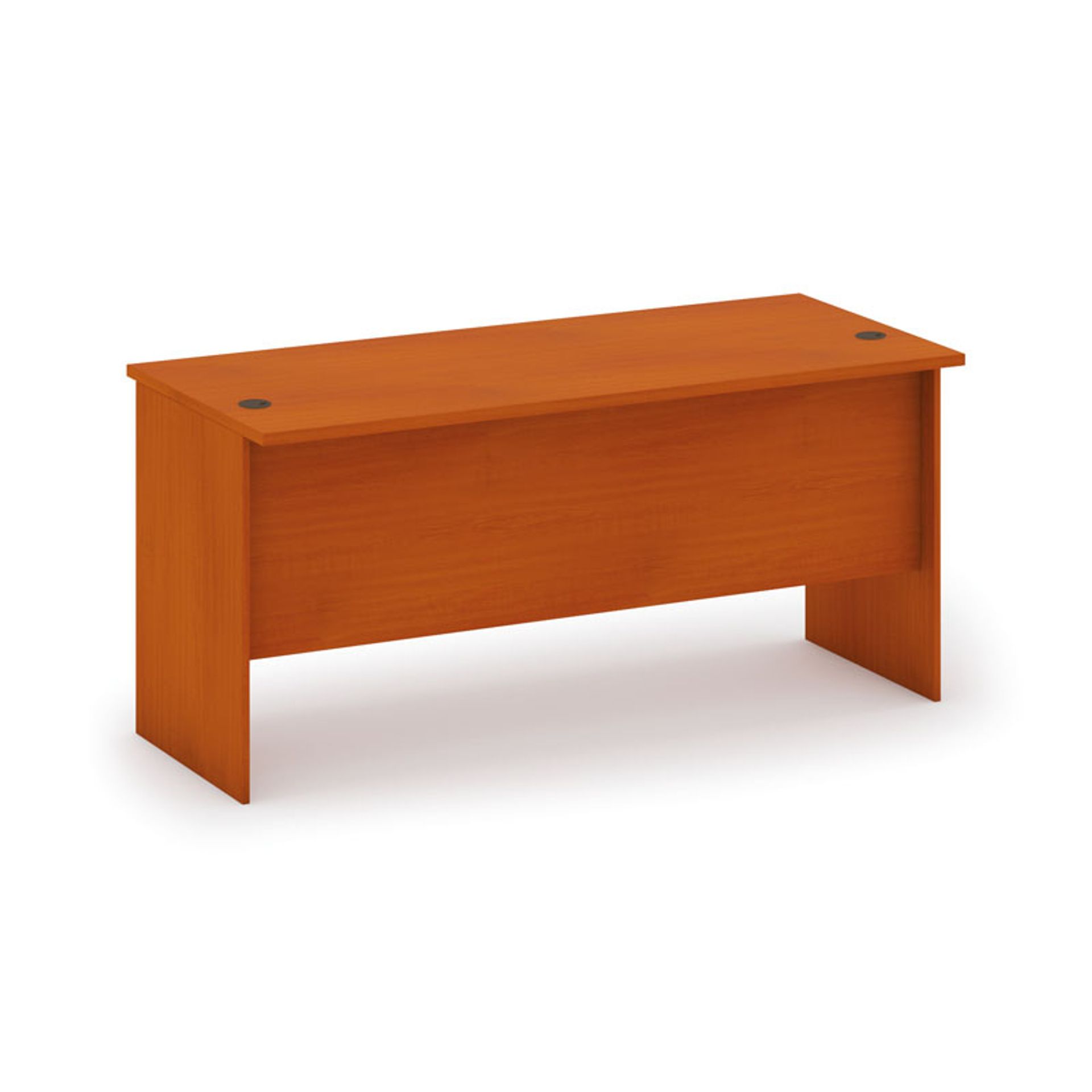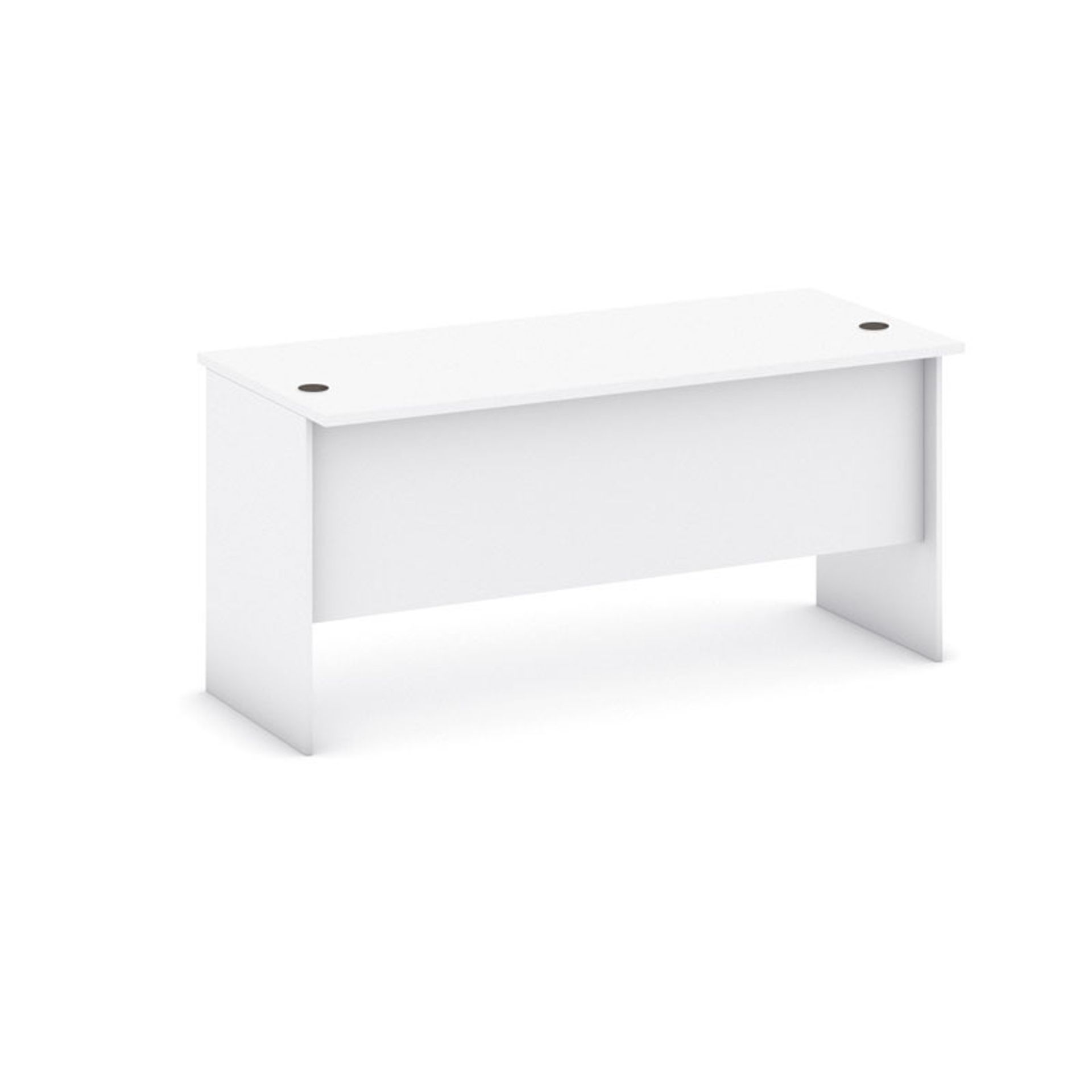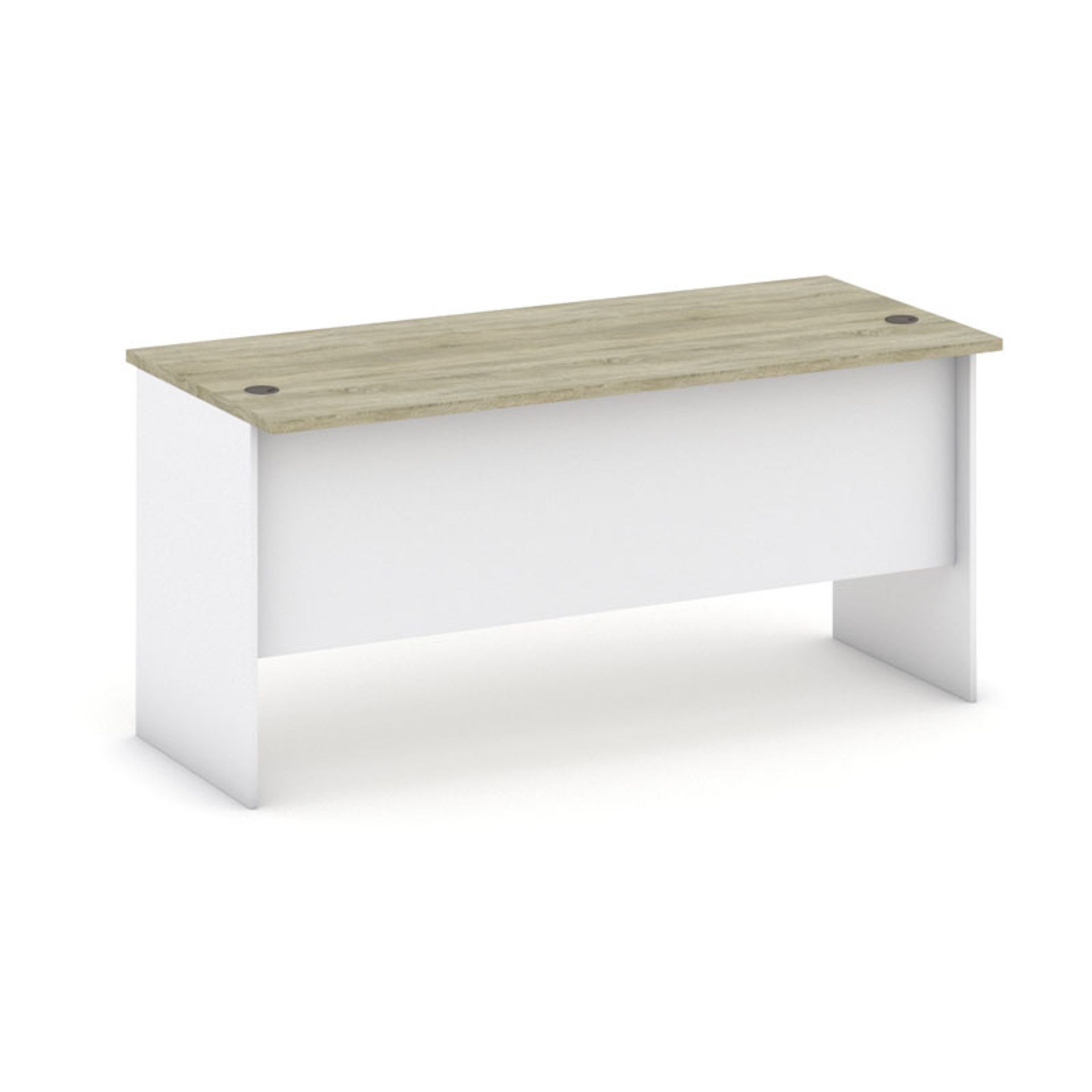 Biurko MIRELLI zbudowane jest na podłużnej podstawie uzupełnionej panelem maskującym. Oba wykonane z laminowanej płyty wiórowej w tym samym wzorze. Dzięki temu biurka sprawiają spójne wrażenie w biurze. Grubość podłużnych nóg stołu wynosi 16 mm. Tworzy to solidną podstawę o wystarczającej stabilności, nawet gdy stół jest używany codziennie.