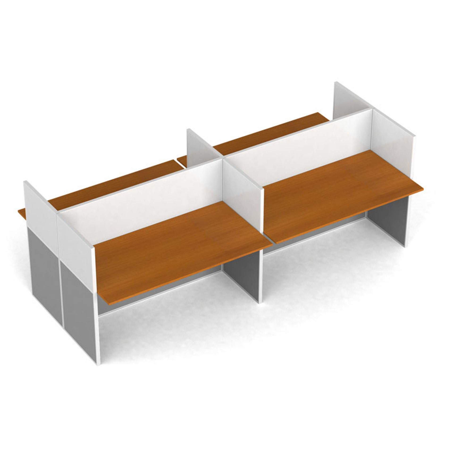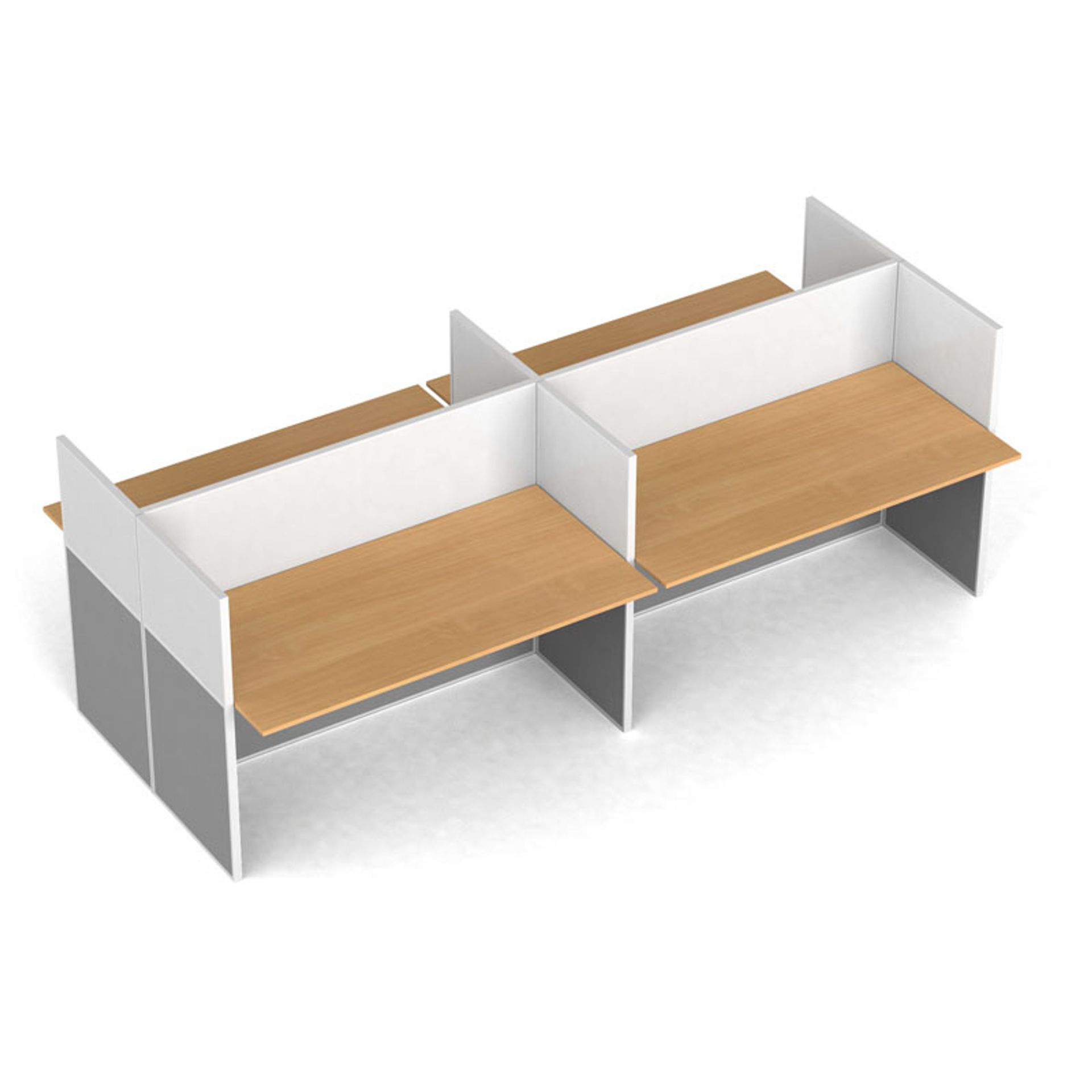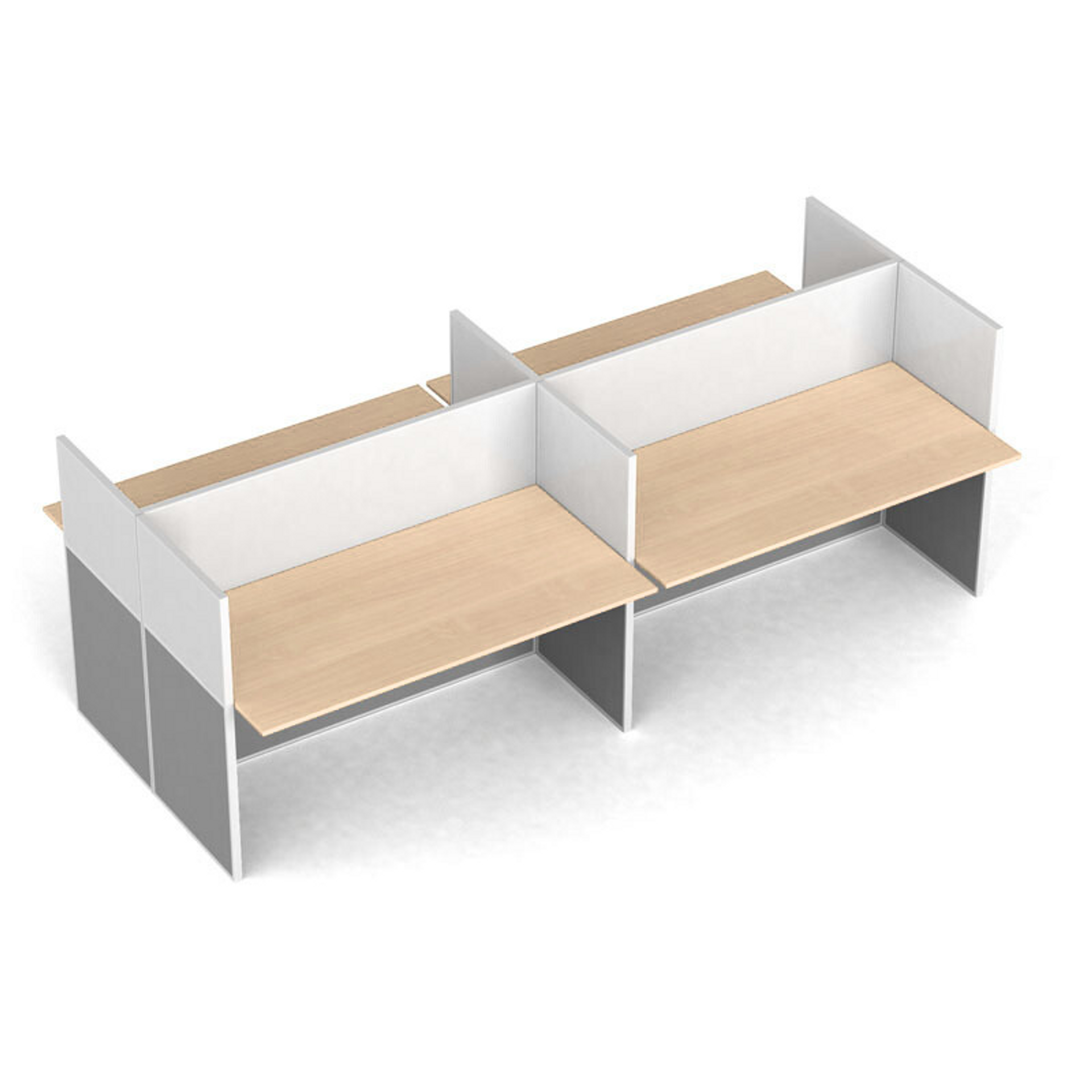 Biurko PRIMO z panelem, tablica magnetyczną, 4 stanowiska, szary/buk