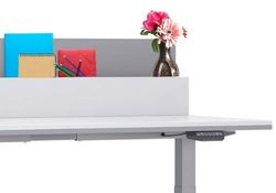 Do stołu dodawane są również pionowe przegrody, w których bez problemu można przechowywać najważniejsze dokumenty. Szczelina między poszczególnymi przegrodami wynosi 140 mm. Dolny parawan ma wysokość 330 mm, a wyższy 165 mm. Nadają się również np. do umieszczenia lamp, kabli czy artykułów biurowych, które chcesz ukryć. Ponadto pełnią funkcję ekranów, zapewniając prywatność we wspólnym biurze.