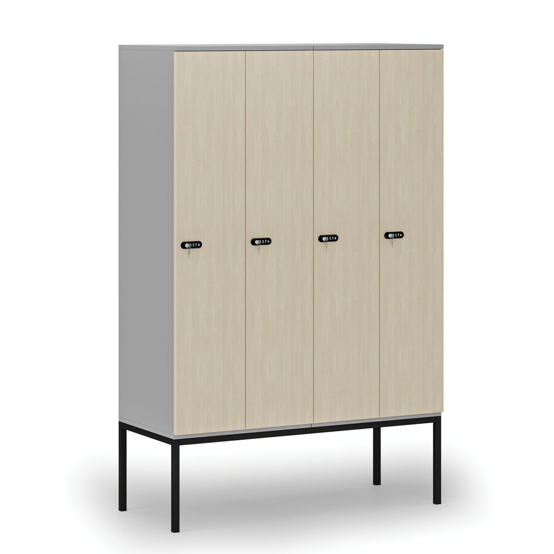 Drewniana szafa na nogach pochodzi z naszej własnej produkcji. Postawiliśmy przede wszystkim na funkcjonalność i bezpieczeństwo. Narożniki oklejone są krawędzią z tworzywa ABS. W szafce nie brakuje wentylacji, którą zapewniają otwory w tylnej ścianie.