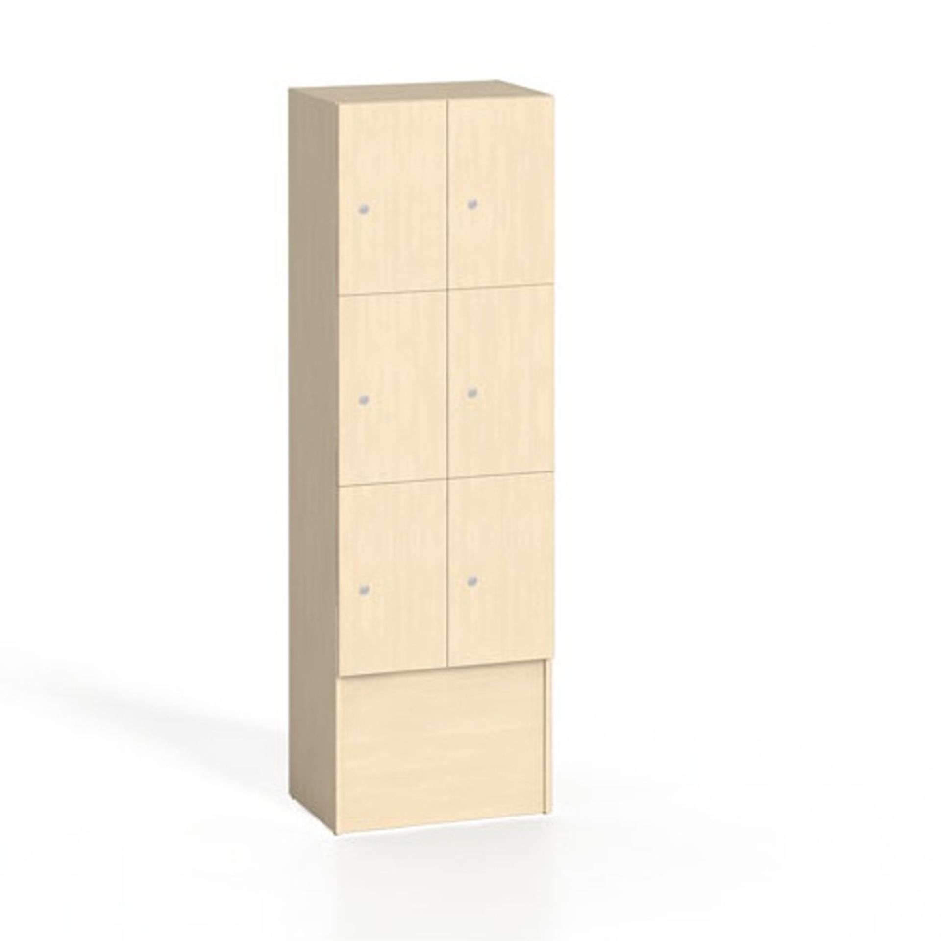 Szafka o szerokości 300 mm składa się z 6 zamykanych skrytek. Każdy boks zapewnia wystarczającą ilość miejsca do przechowywania rzeczy osobistych, plecaków lub toreb. To ekonomiczne, a jednocześnie bezpieczne i zamykane rozwiązanie idealnie sprawdza się wszędzie tam, gdzie trzeba zaoszczędzić miejsce i nie ma potrzeby wieszania dłuższych ubrań.