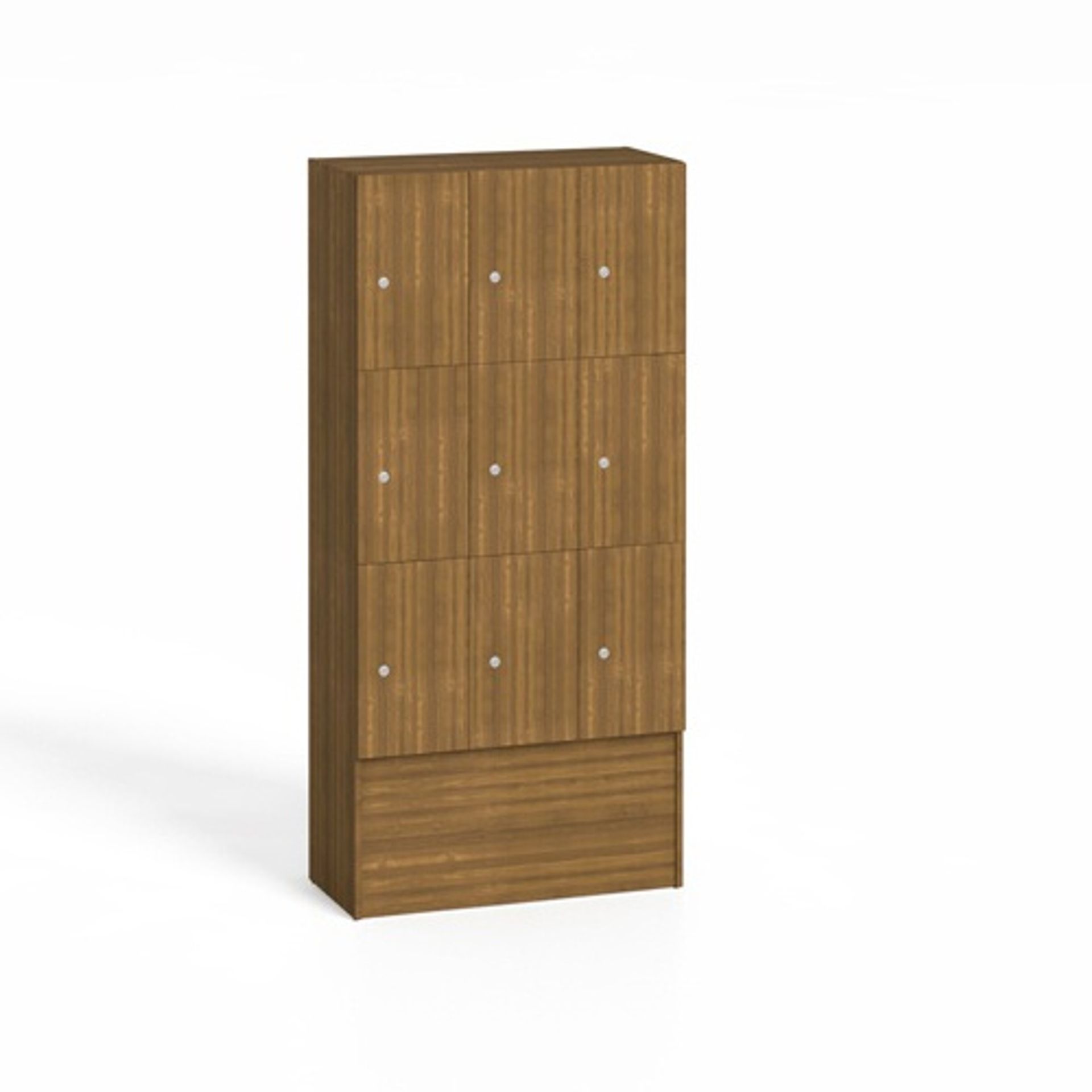 Szafka o szerokości 300 mm składa się z 9 zamykanych skrytek. Każdy boks zapewnia wystarczającą ilość miejsca do przechowywania rzeczy osobistych, plecaków lub toreb. To ekonomiczne, a jednocześnie bezpieczne i zamykane rozwiązanie idealnie sprawdza się wszędzie tam, gdzie trzeba zaoszczędzić miejsce i nie ma potrzeby wieszania dłuższych ubrań.