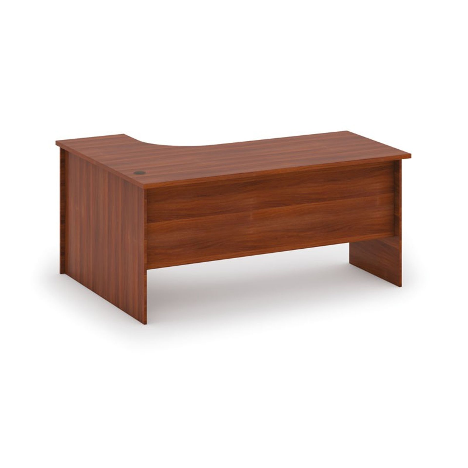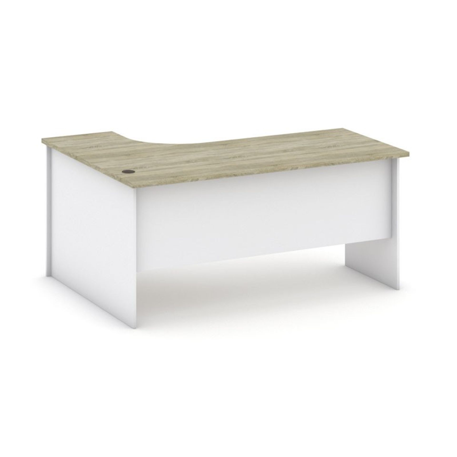 Narożne biurko biurowe MIRELLI można wybrać w wersji lewej lub prawej. Zaokrąglony blat pomaga zoptymalizować środowisko pracy. Zaokrąglony blat zapewnia optymalne ułożenie i prawidłowe oparcie dłoni na stole. Aby zminimalizować szkodliwe skutki całodziennego siedzenia przy komputerze, warto poprawić ergonomię pracy.