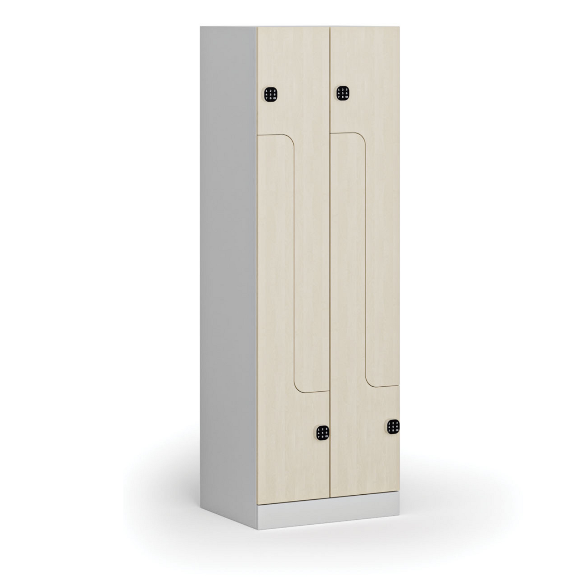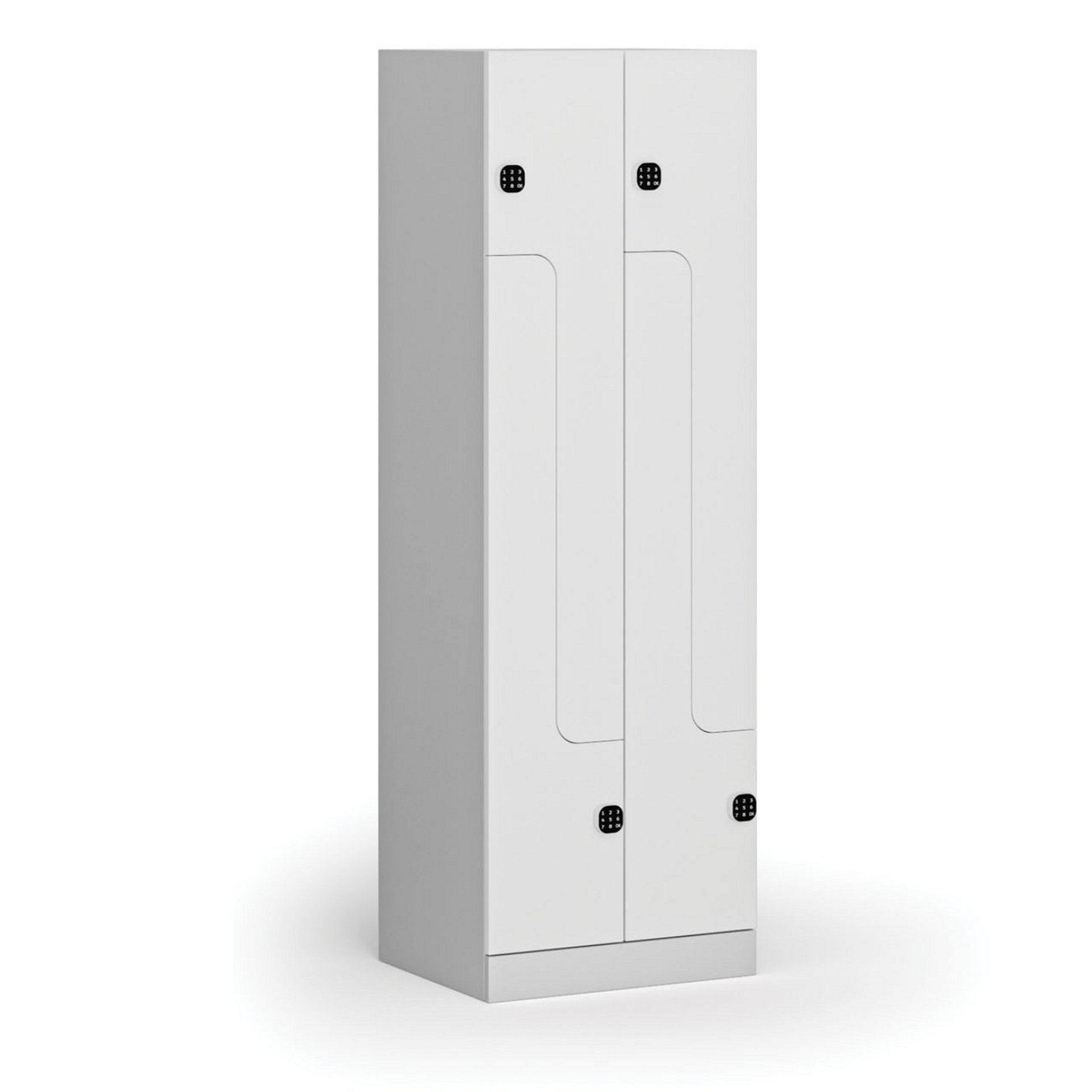 Szafka typu Z inteligentnie dzieli przestrzeń jednej sekcji (o szerokości 300 mm) na górną i dolną część, z których każda służy jako oddzielnie zamykany schowek. Szafka z drzwiami w kształcie litery Z jest idealna dla 2 osób lub jako alternatywa dla szerokich szafek z pośrednią ścianką oddzielającą odzież cywilną od roboczej. W porównaniu z klasycznymi szafkami, w przypadku szafki Z należy jednak liczyć się z nieco mniejszą wysokością do zawieszenia odzieży – ok. 1000 mm.