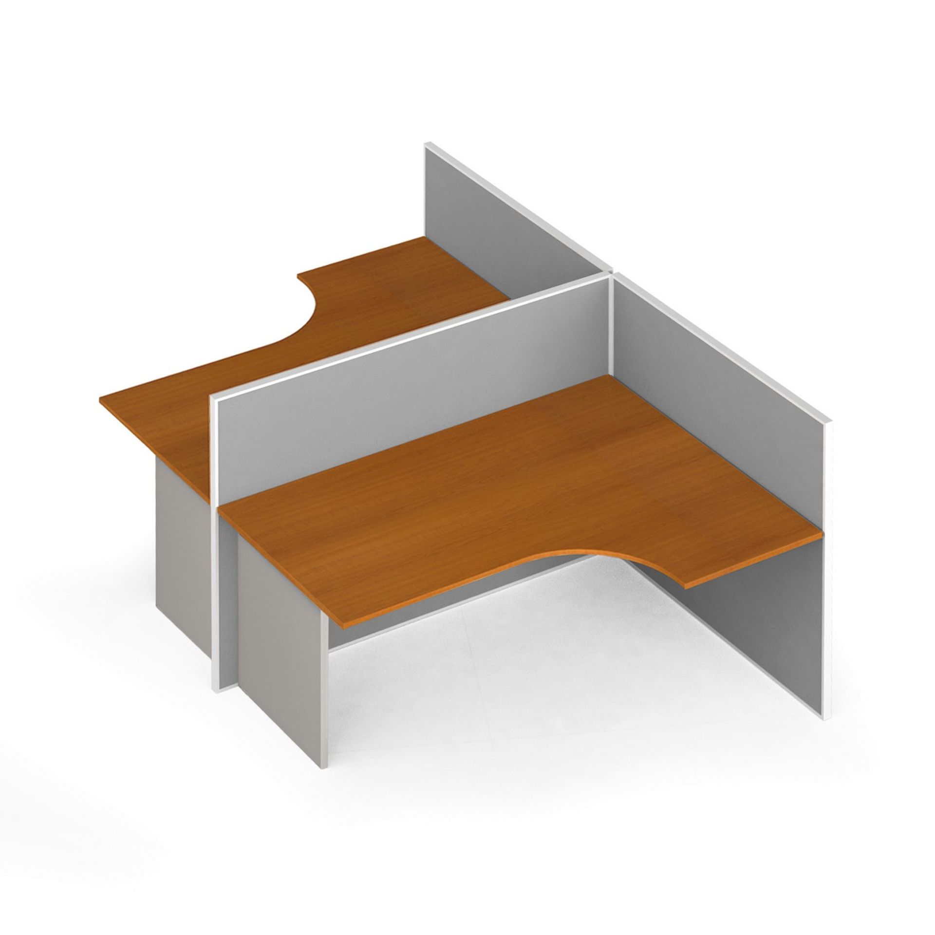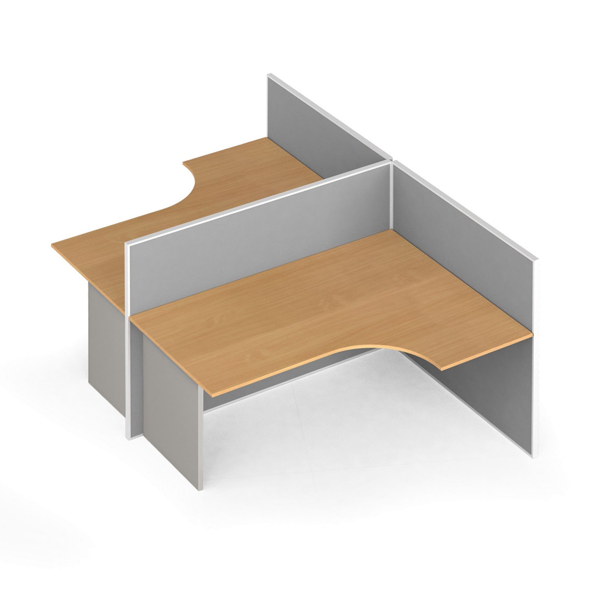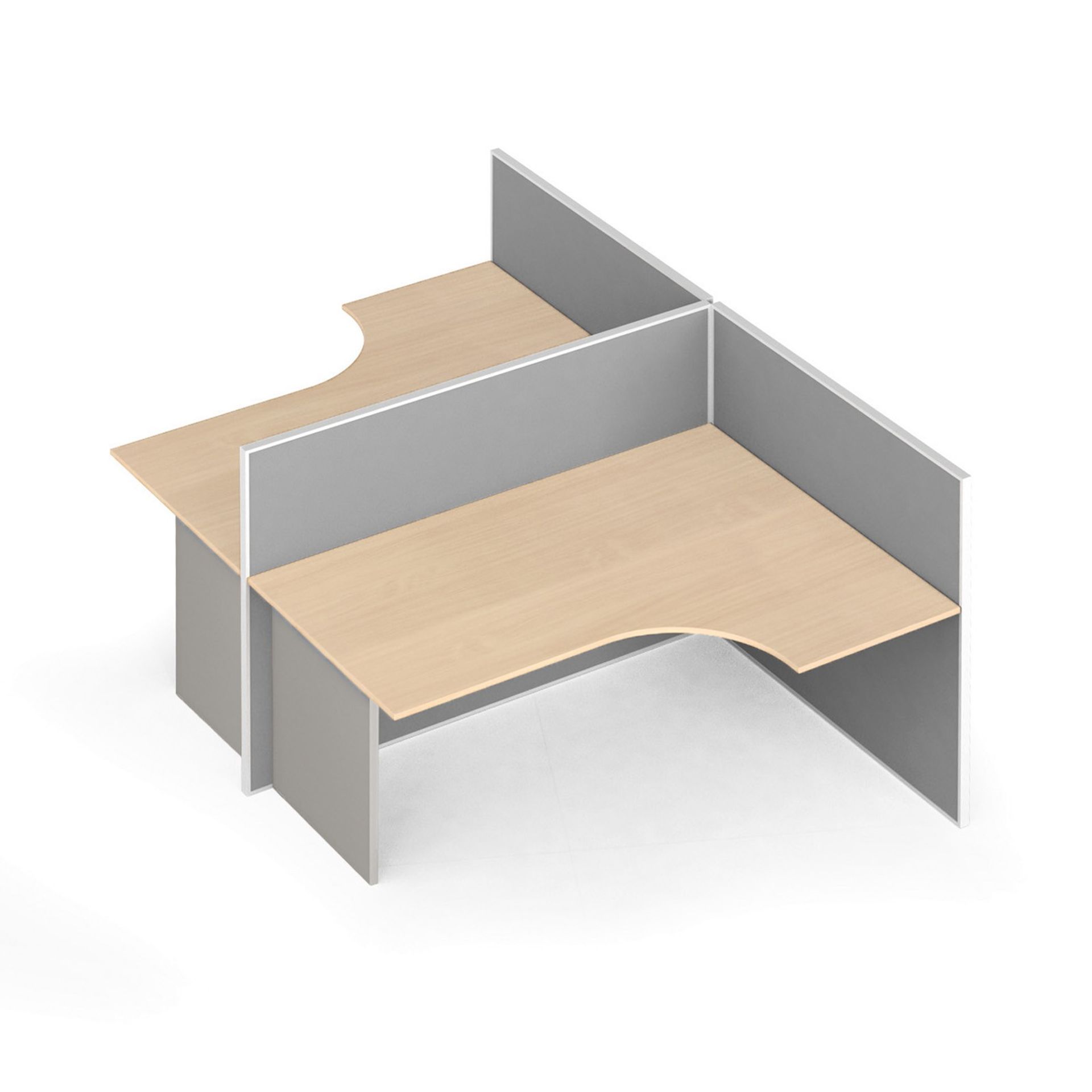 /Meble biurowe/Biurka/Stoły wieloosobowe/Narożne biurko PRIMO z panelami, w kształcie T, tablica, 2 stanowiska, szary/brzoza