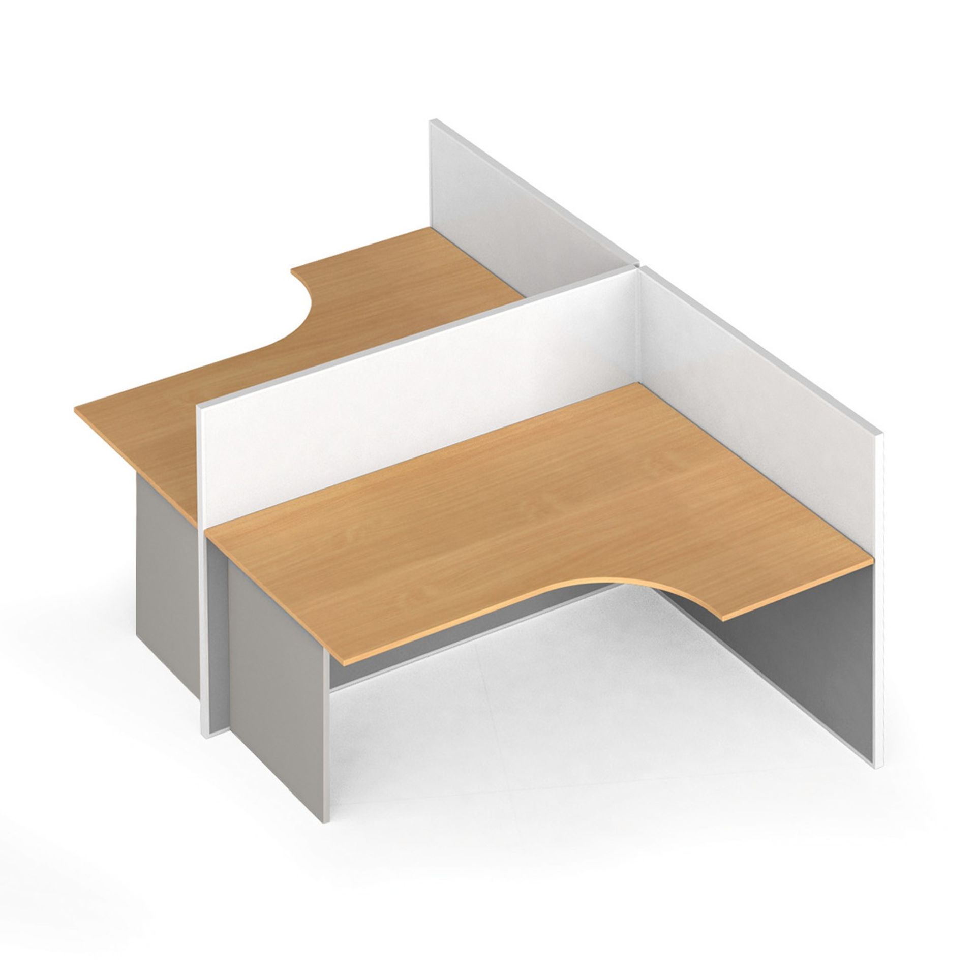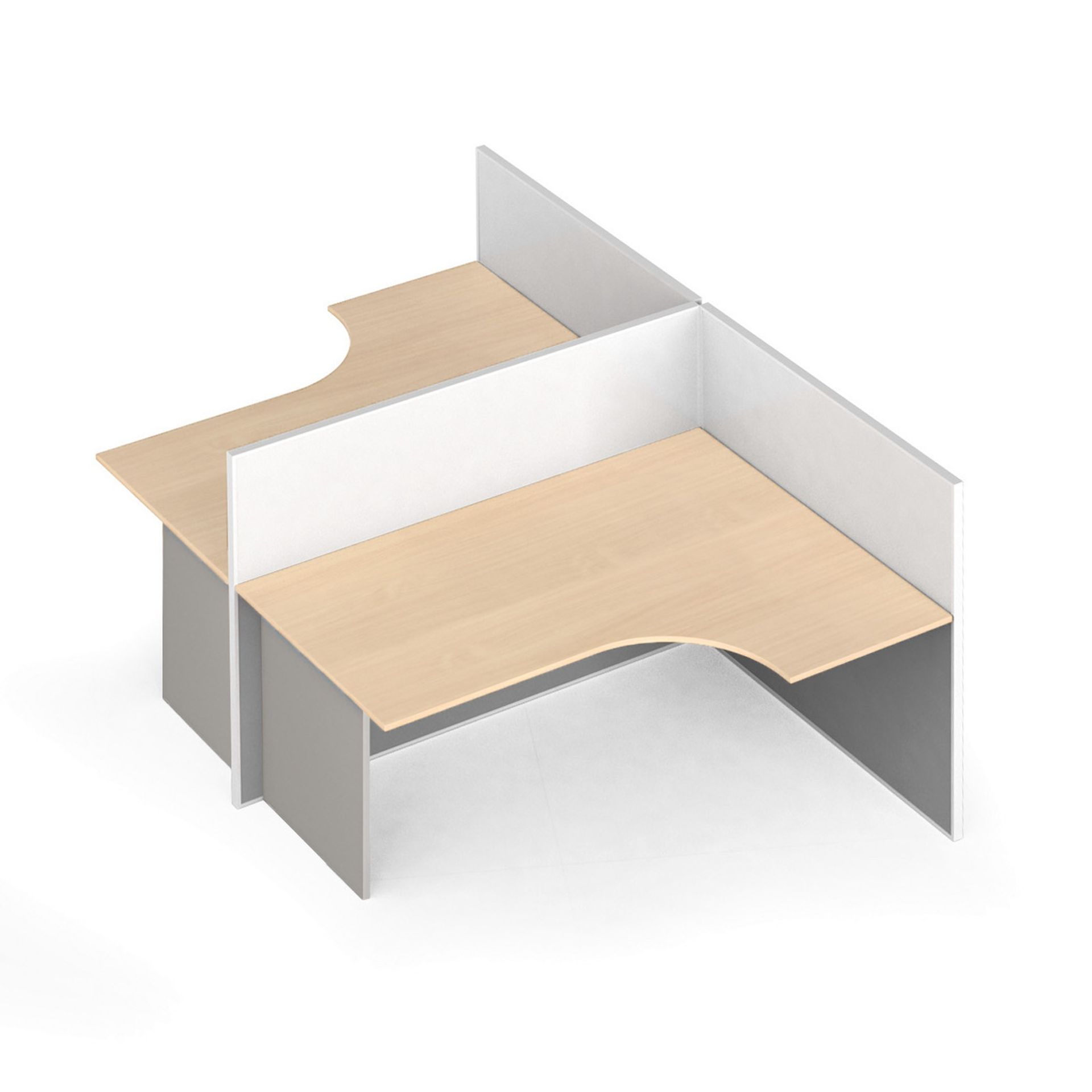 /Meble biurowe/Biurka/Stoły wieloosobowe/Narożne biurko PRIMO z panelami, w kształcie T, tablica magnetyczną, 2 stanowiska, szara/czereśnia