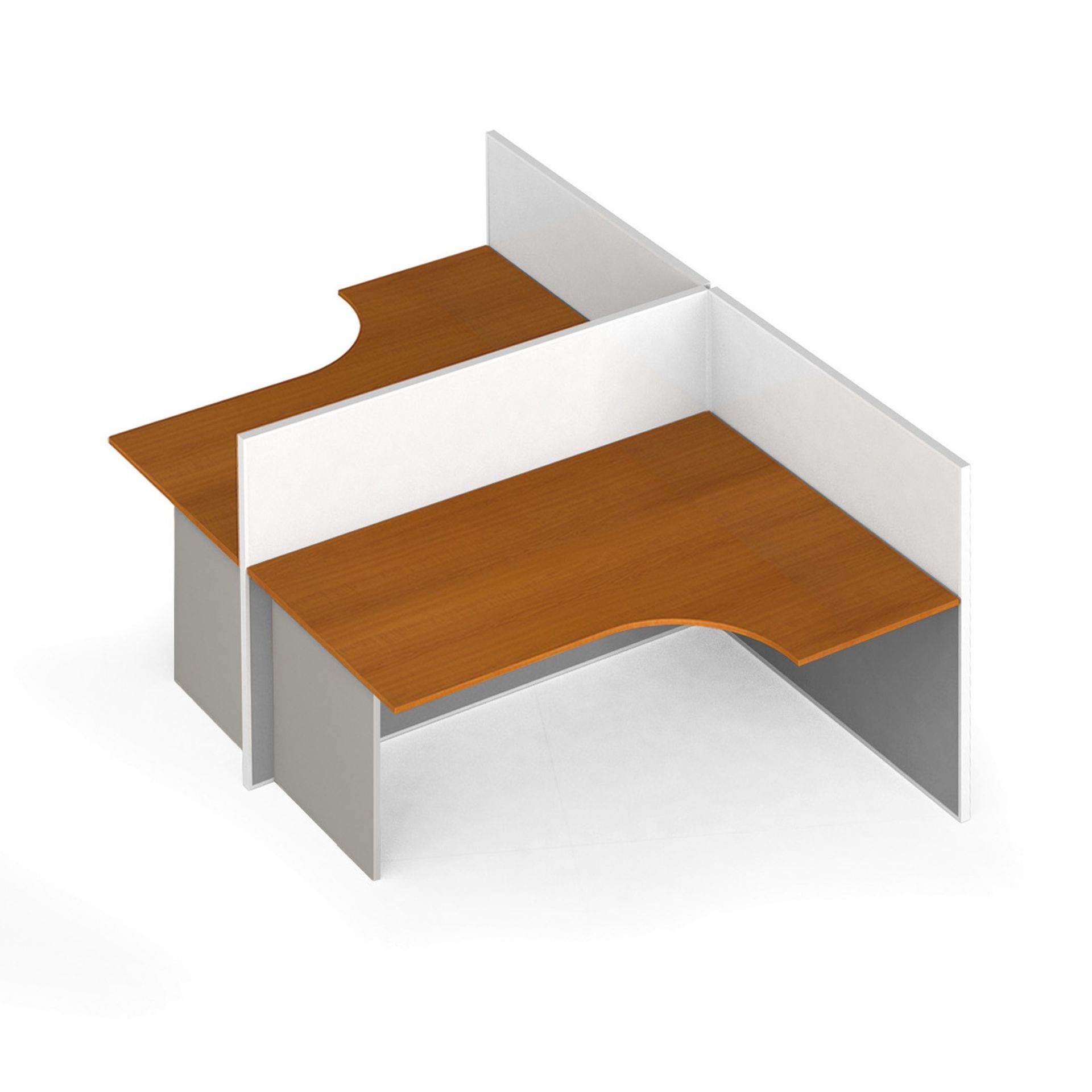 Narożne biurko PRIMO z panelami, w kształcie T, tablica magnetyczną, 2 stanowiska, szara/czereśnia