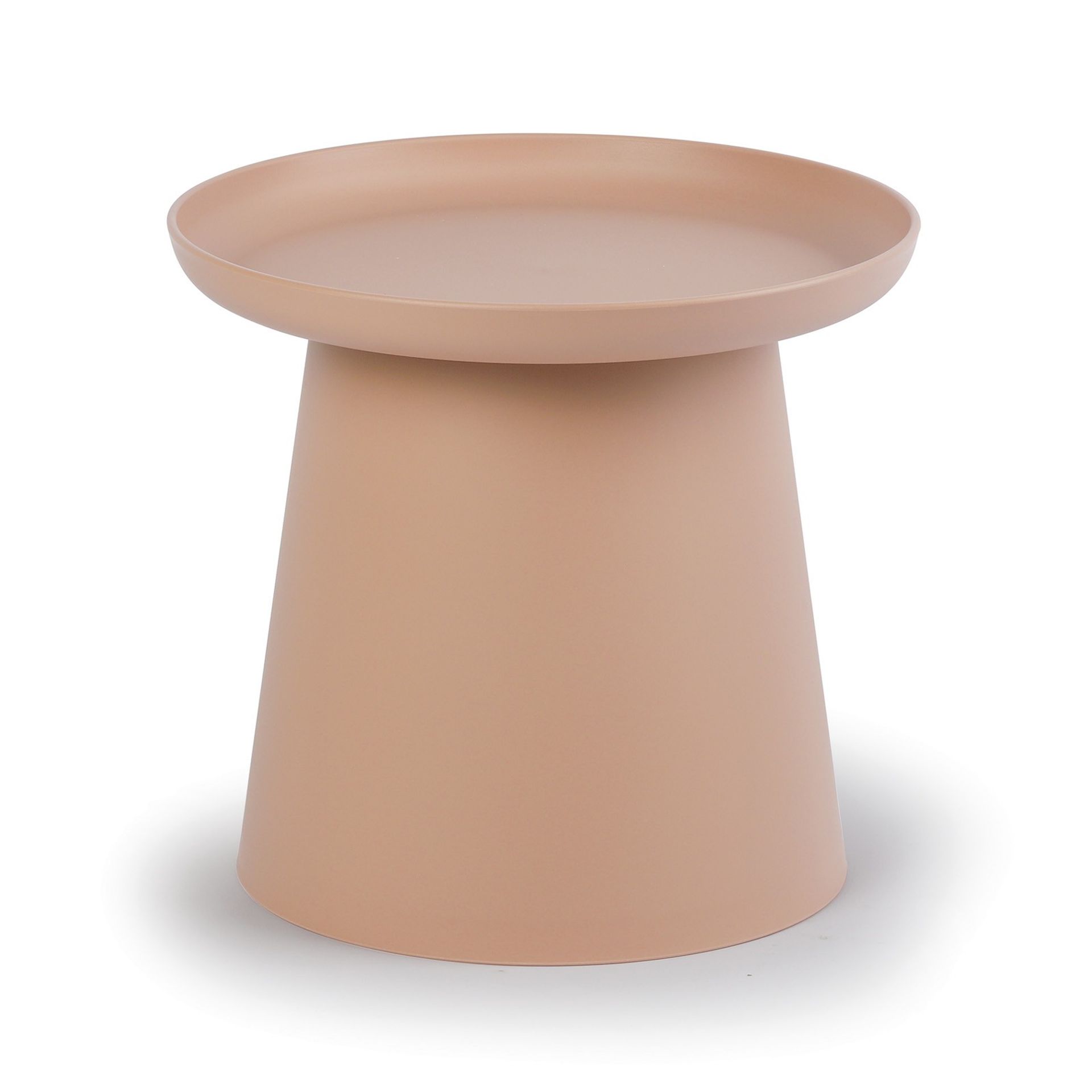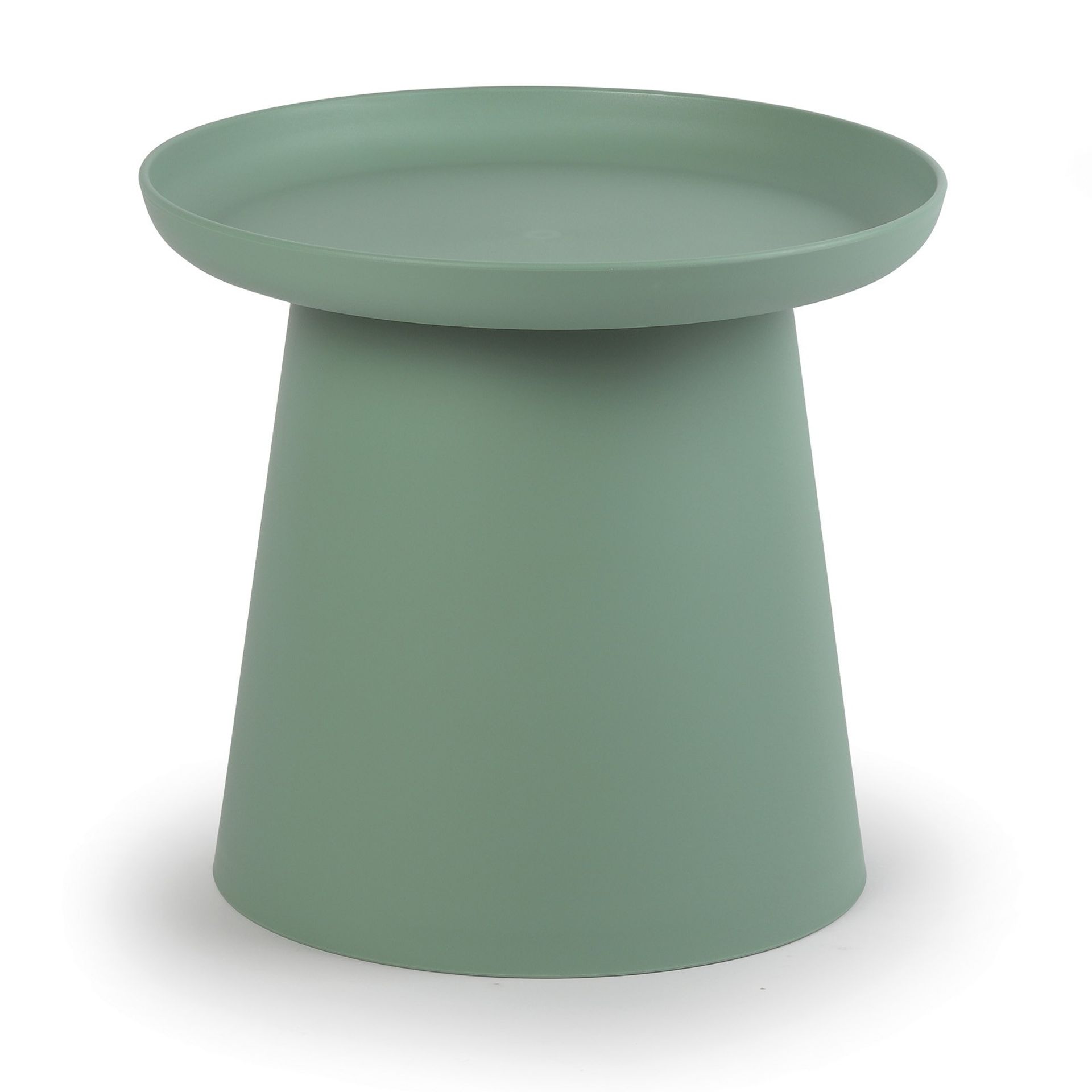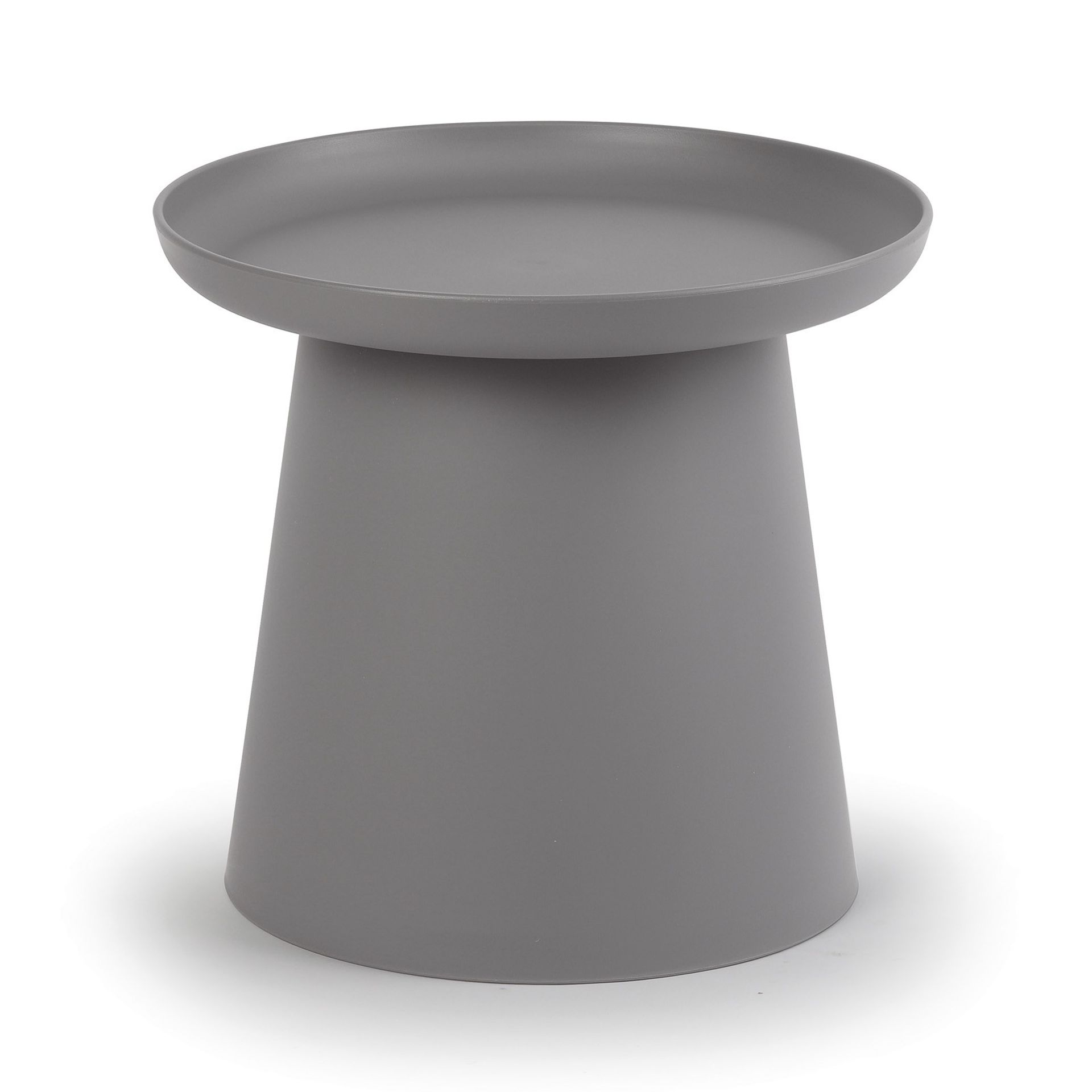 Nowoczesny stół z tworzywa sztucznego do wszechstronnego użytku, okrągły blat z antypoślizgową krawędzią, odpowiedni do użytku wewnątrz i na zewnątrz. Wykonany z litego polipropylenu, średnica płyty 500 mm, wysokość 462 mm, nośność 150 kg, kolor szary.