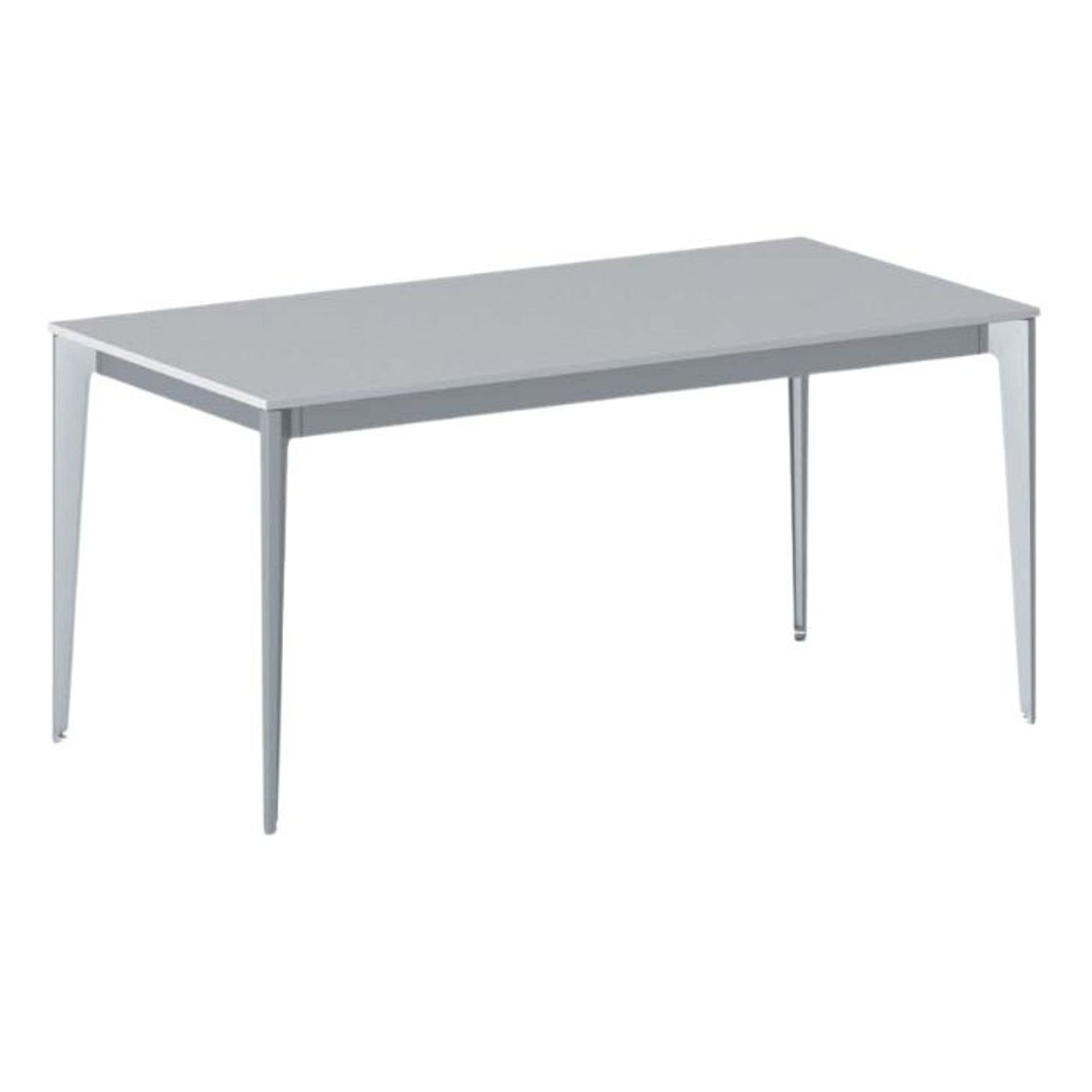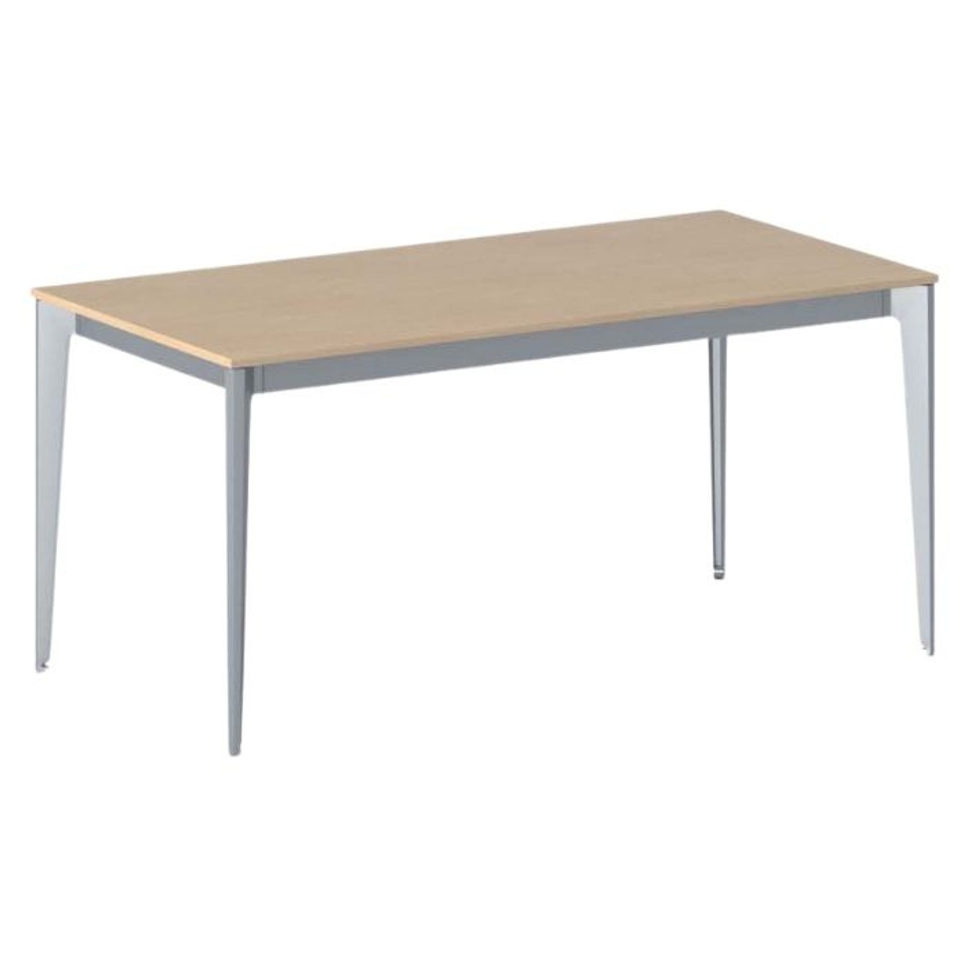 /Meble biurowe/Serie mebli biurowych/Meble biurowe PRIMO GRAY/Biurka PRIMO GRAY/Biurka z metalowymi nogami PRIMO GRAY/Stół konferencyjny do biura PRIMO ACTION, 160x80 cm, szaro-srebrna podstawa, dąb naturalny