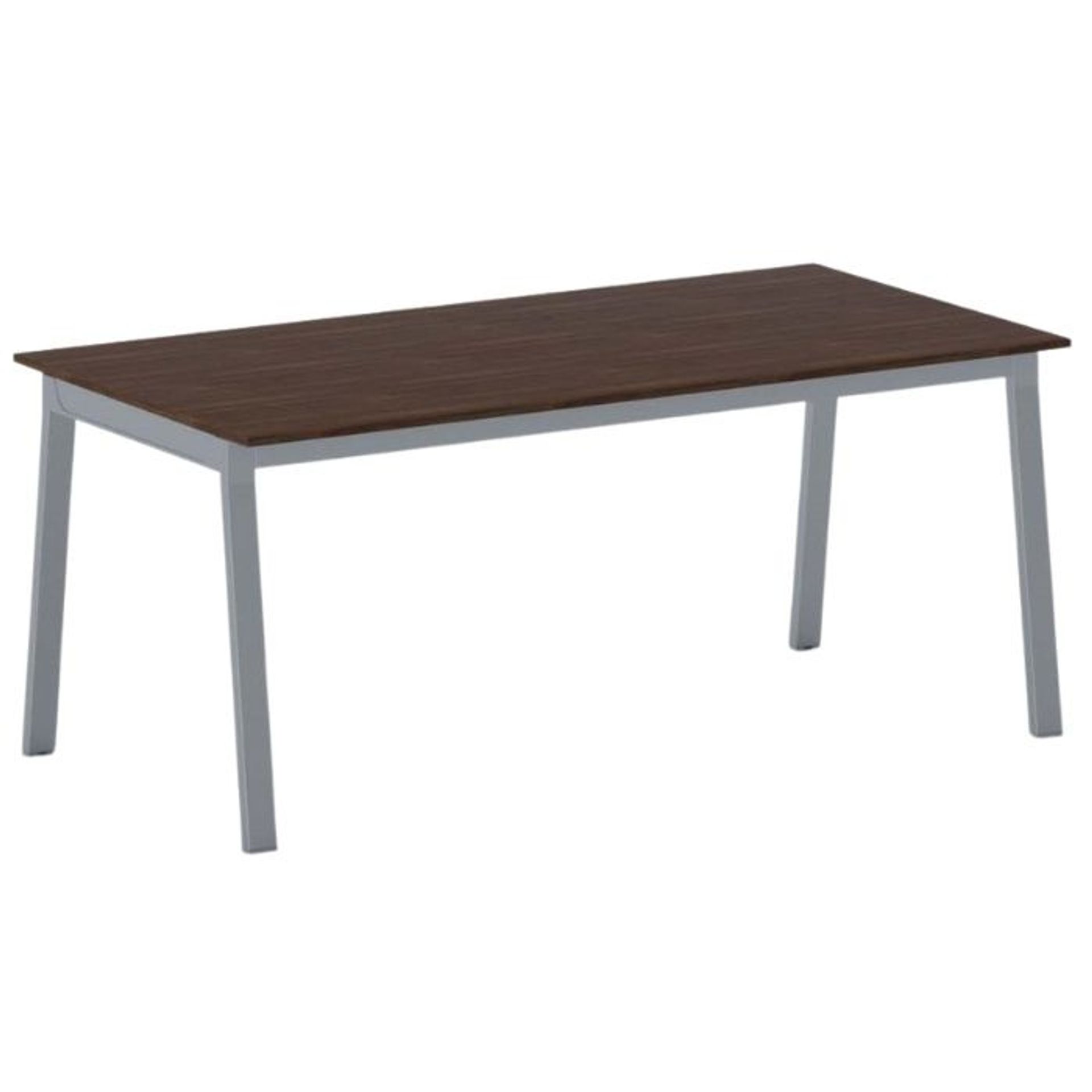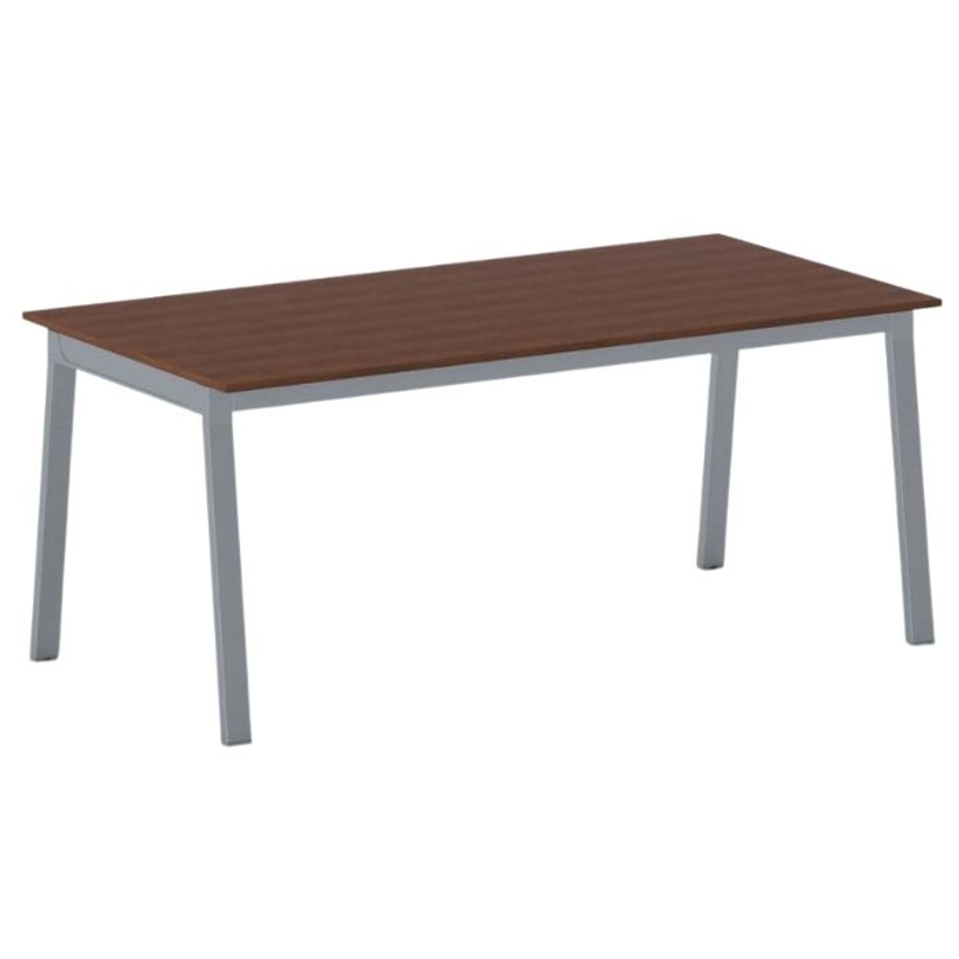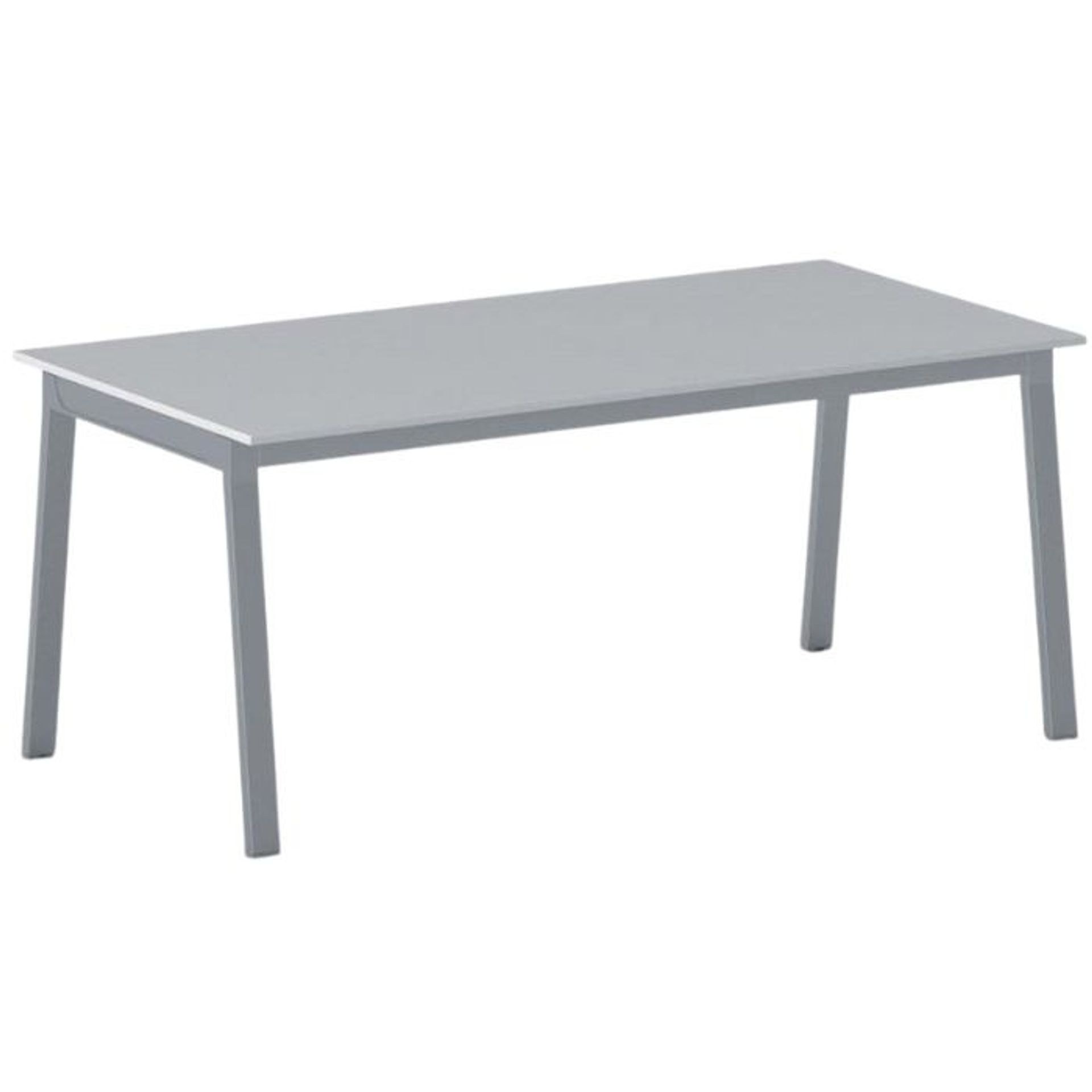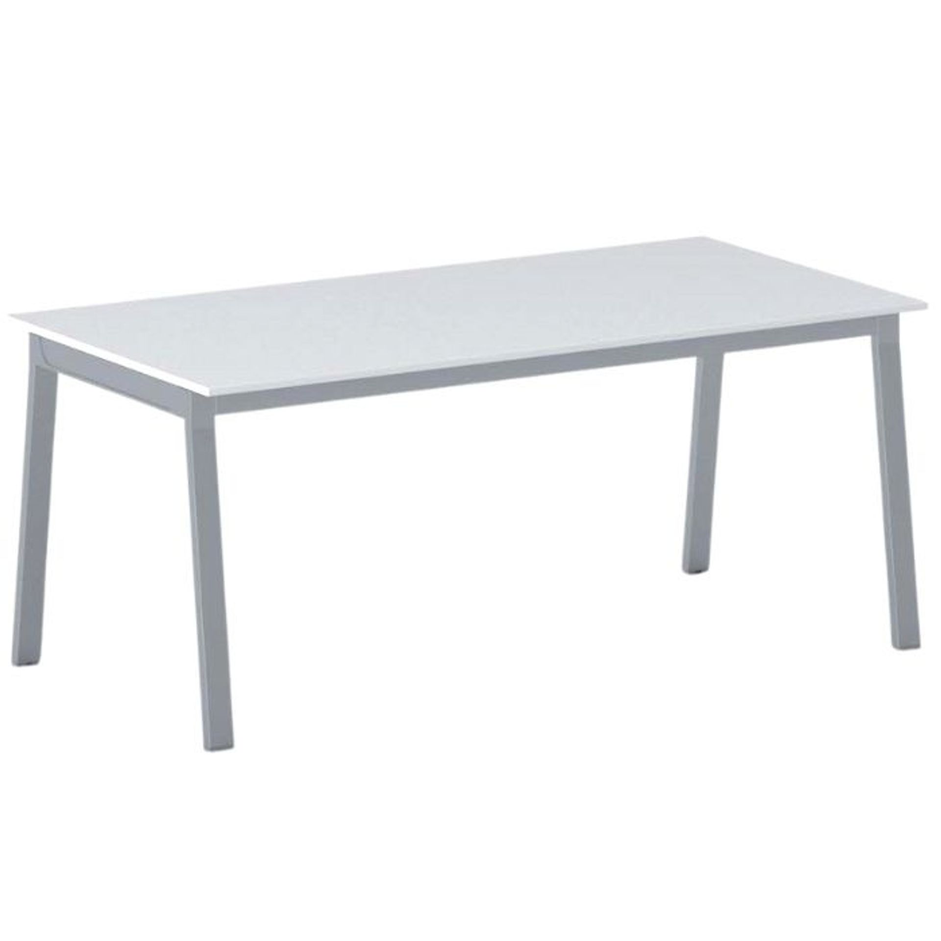 /Meble biurowe/Serie mebli biurowych/Meble biurowe PRIMO GRAY/Biurka PRIMO GRAY/Biurka z metalowymi nogami PRIMO GRAY/Stół konferencyjny do biura PRIMO BASIC, 180x90 cm, szaro-srebrna podstawa, dąb naturalny