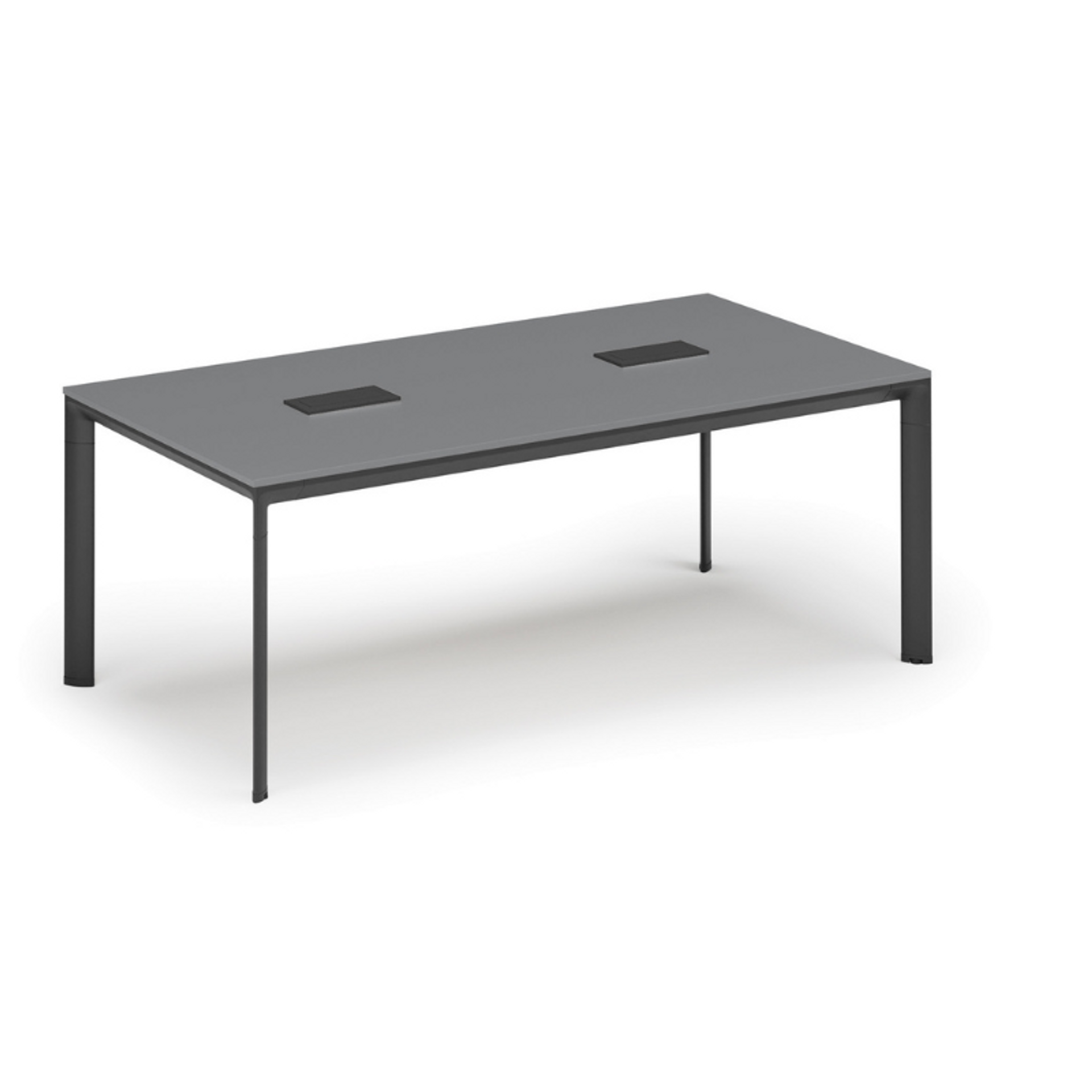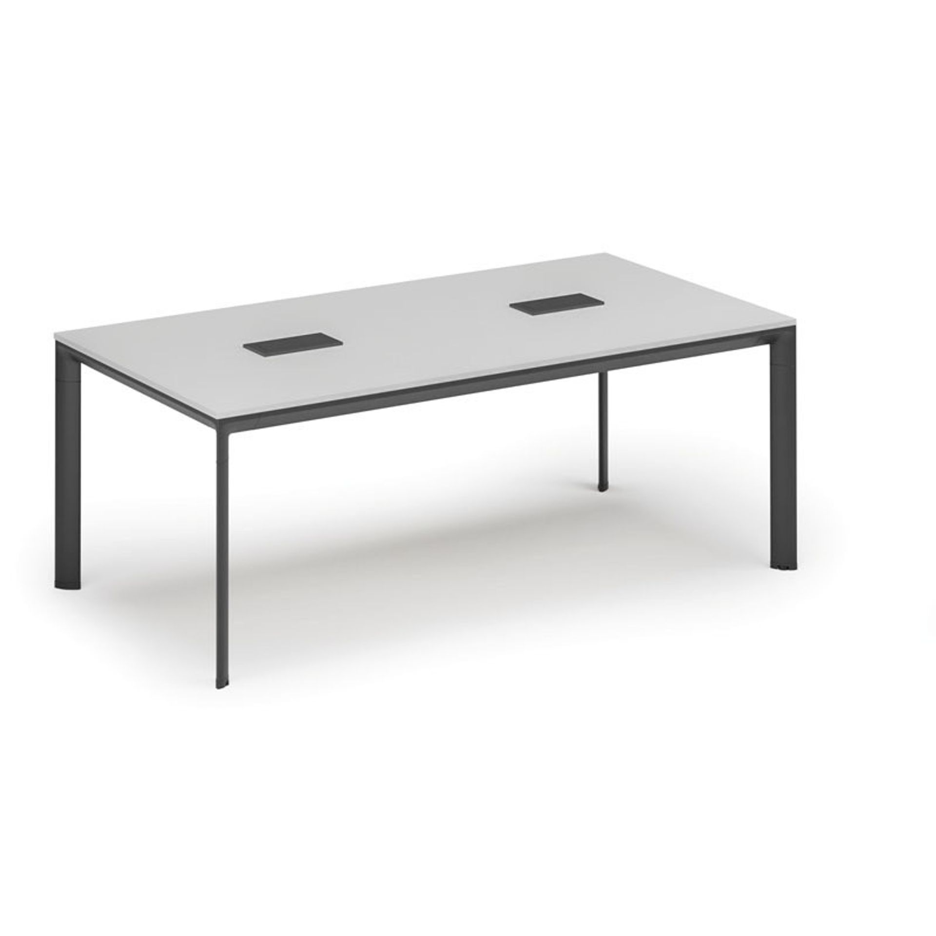 Stół konferencyjny PRIMO INVITATION, 200x100 cm, biały + 2x port blatowy TYP VI, czarny