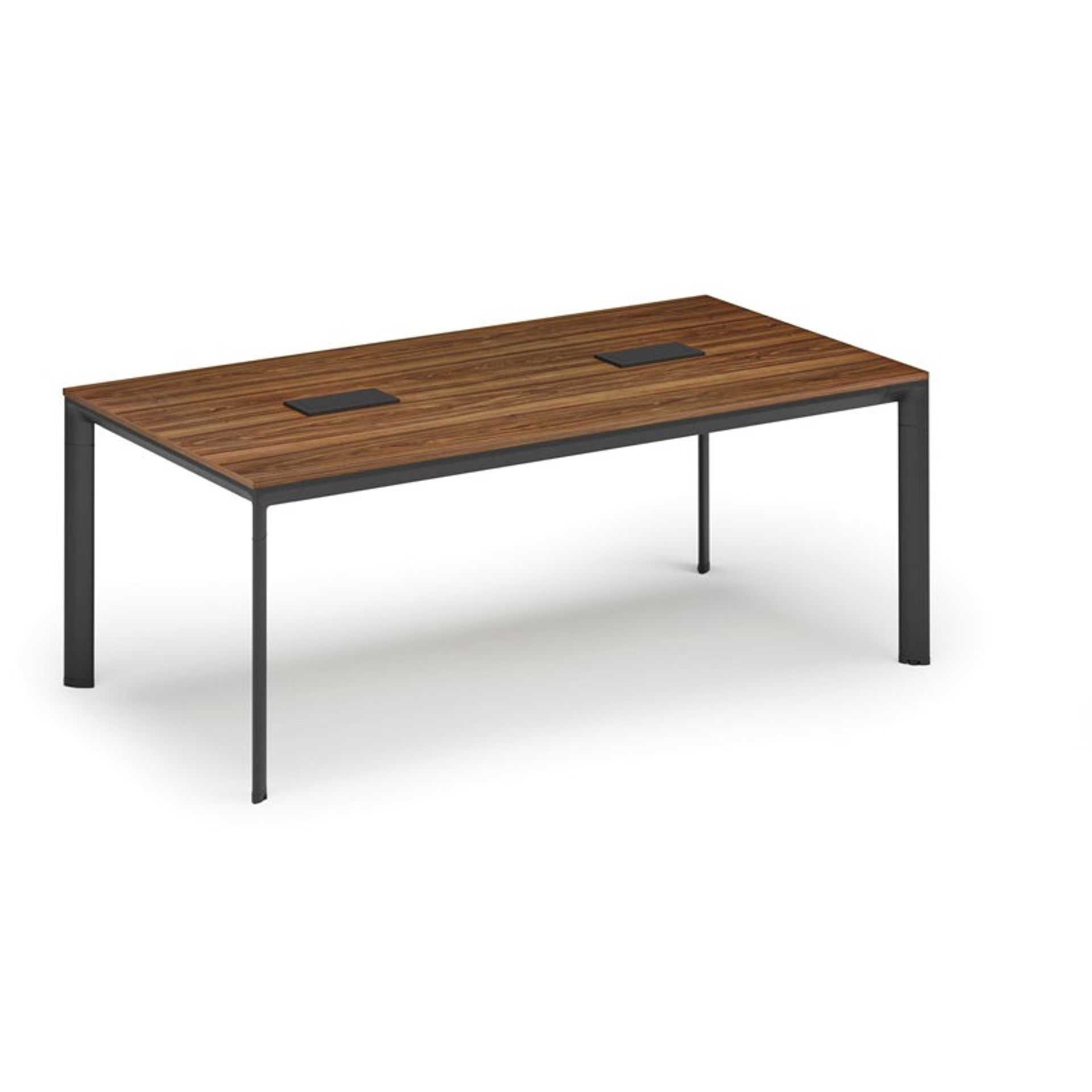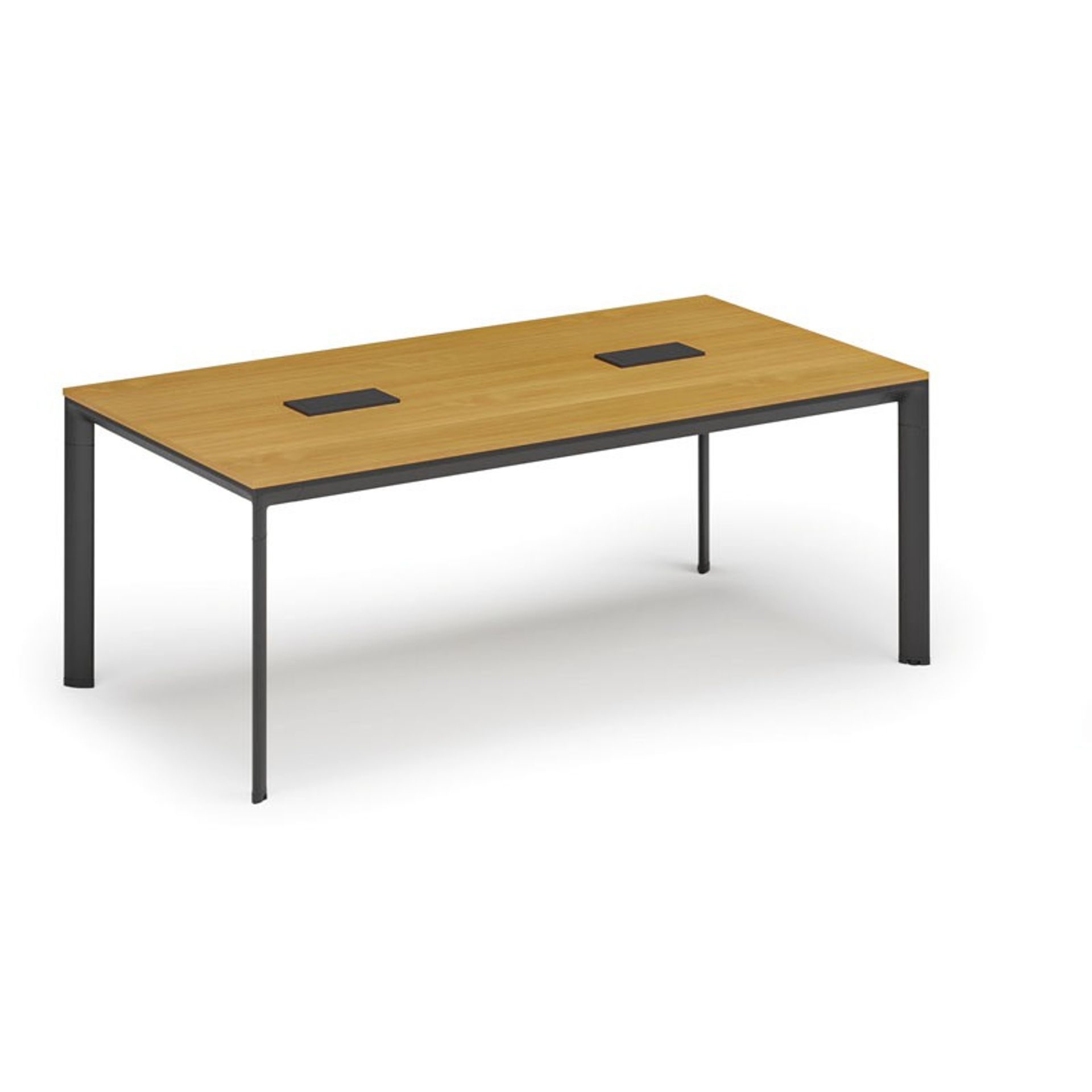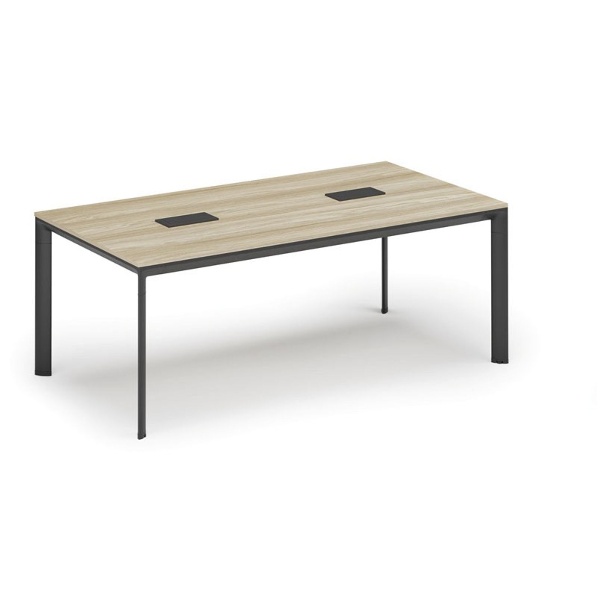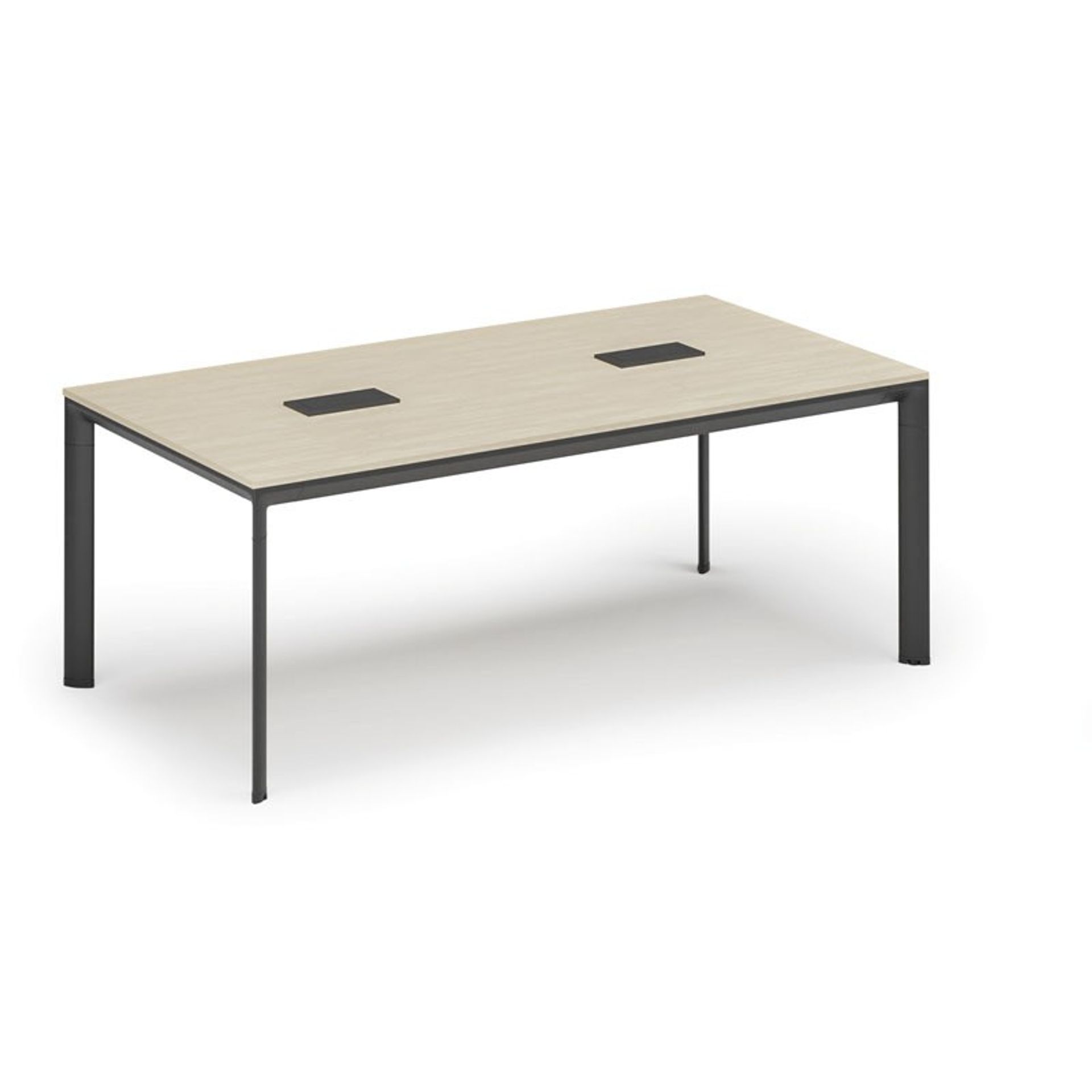 /Meble biurowe/Serie mebli biurowych/Meble biurowe PRIMO WOOD/Biurka PRIMO WOOD/Biurka z metalowymi nogami PRIMO WOOD/Stół konferencyjny PRIMO INVITATION, 200x100 cm, biały + 2x port blatowy TYP VI, czarny