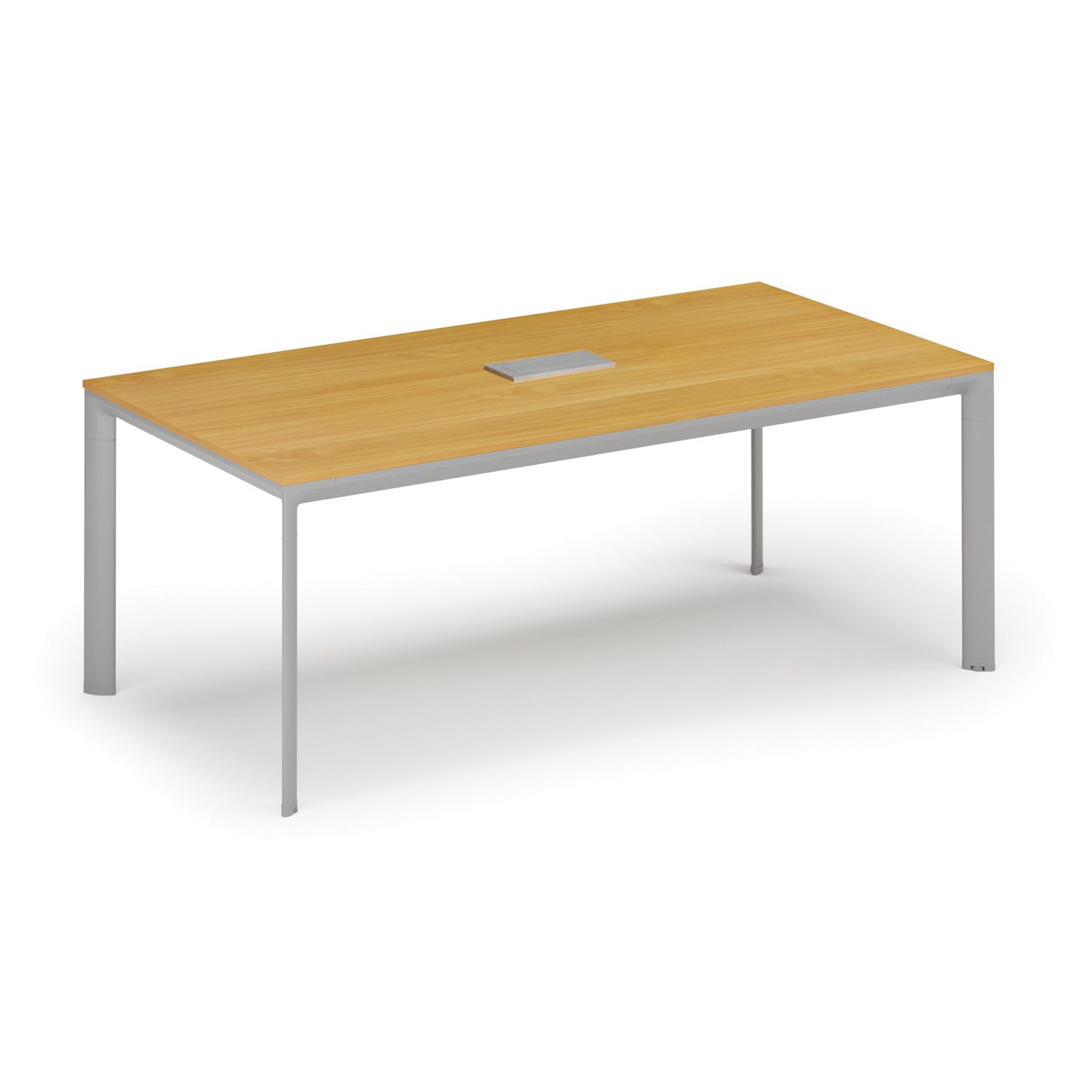 Stół konferencyjny PRIMO INVITATION, 200x100 cm, brzoza + port blatowy TYP I, srebrny