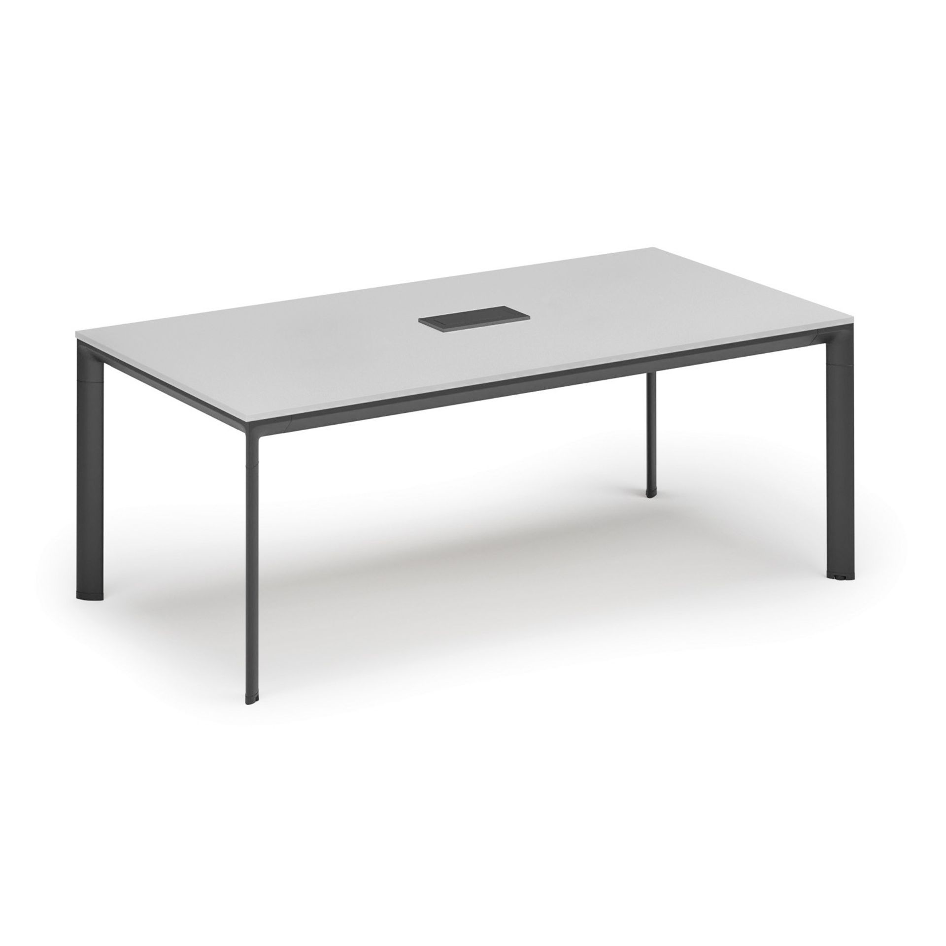 Stół konferencyjny PRIMO INVITATION, 240x120 cm, biały + port blatowy TYP II, czarny