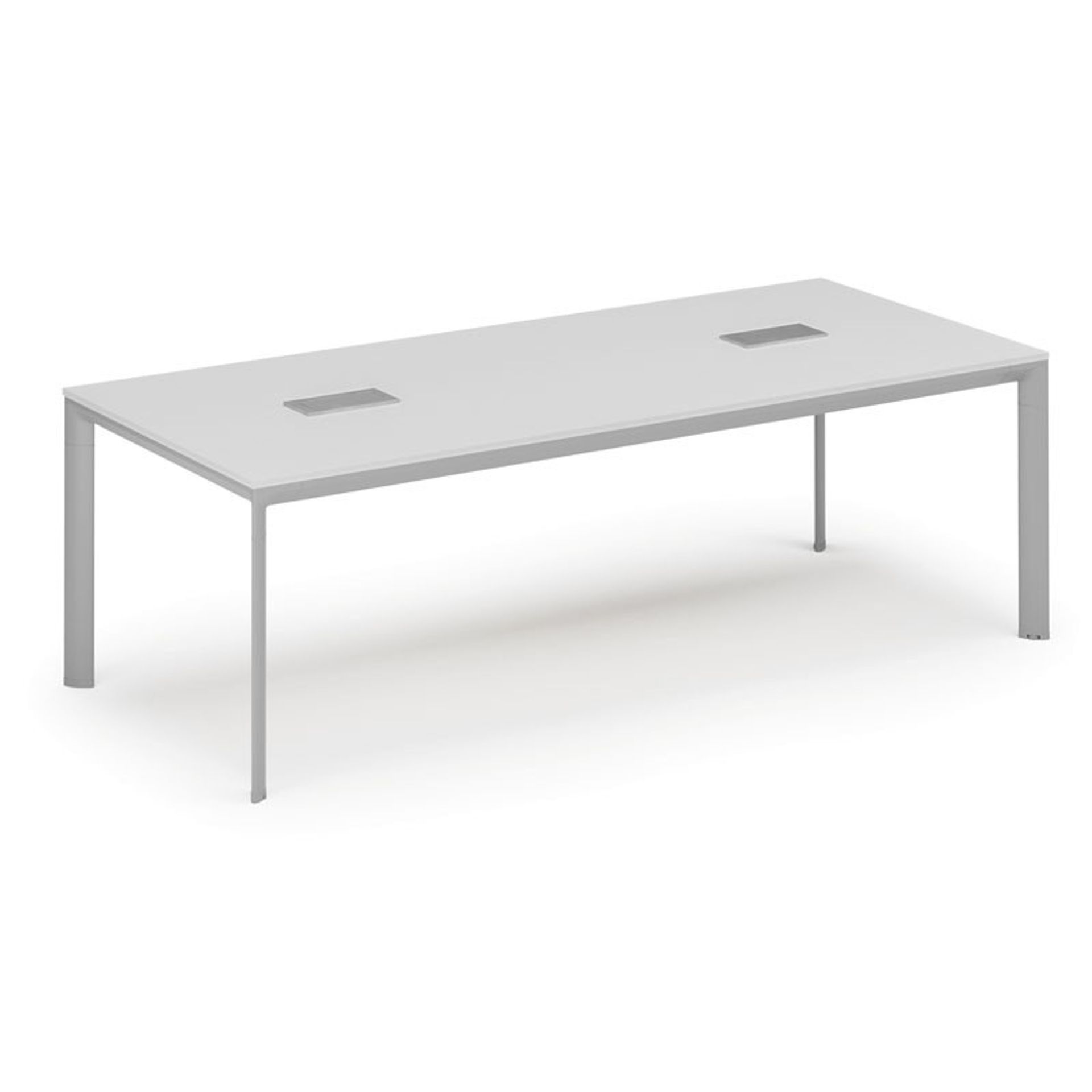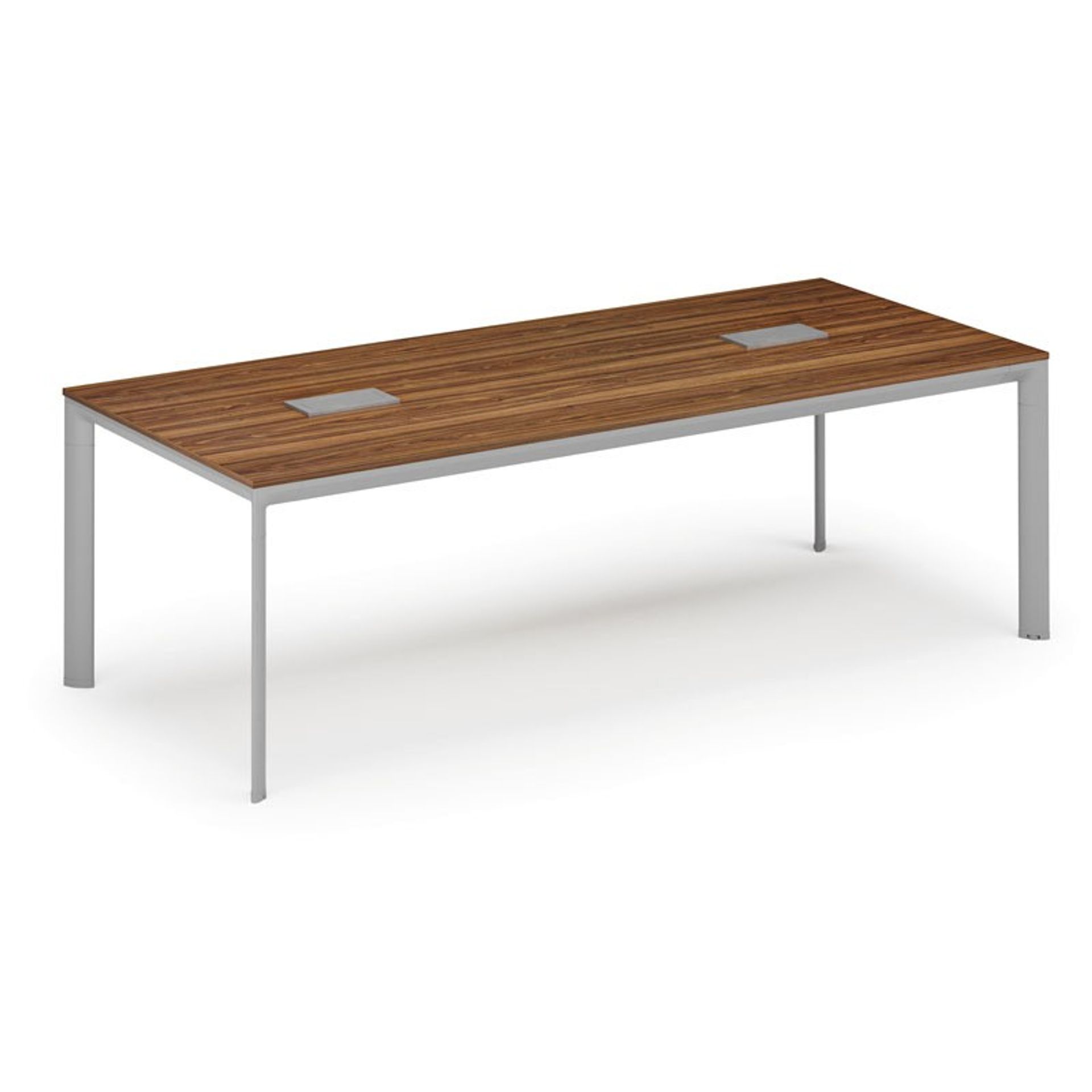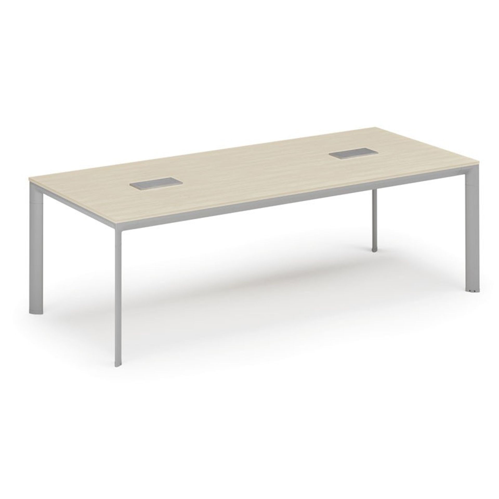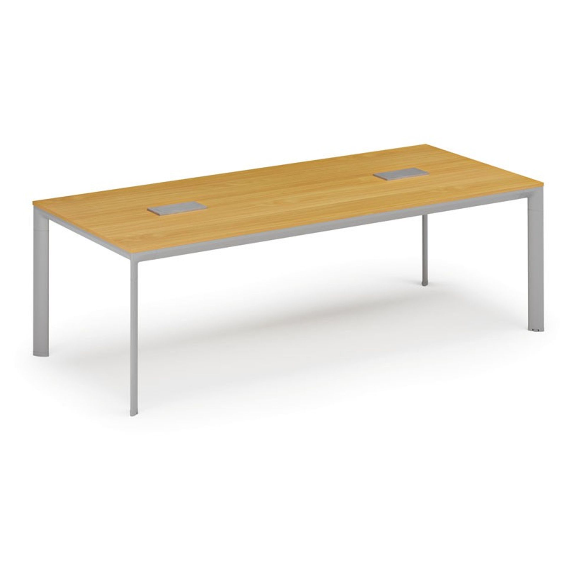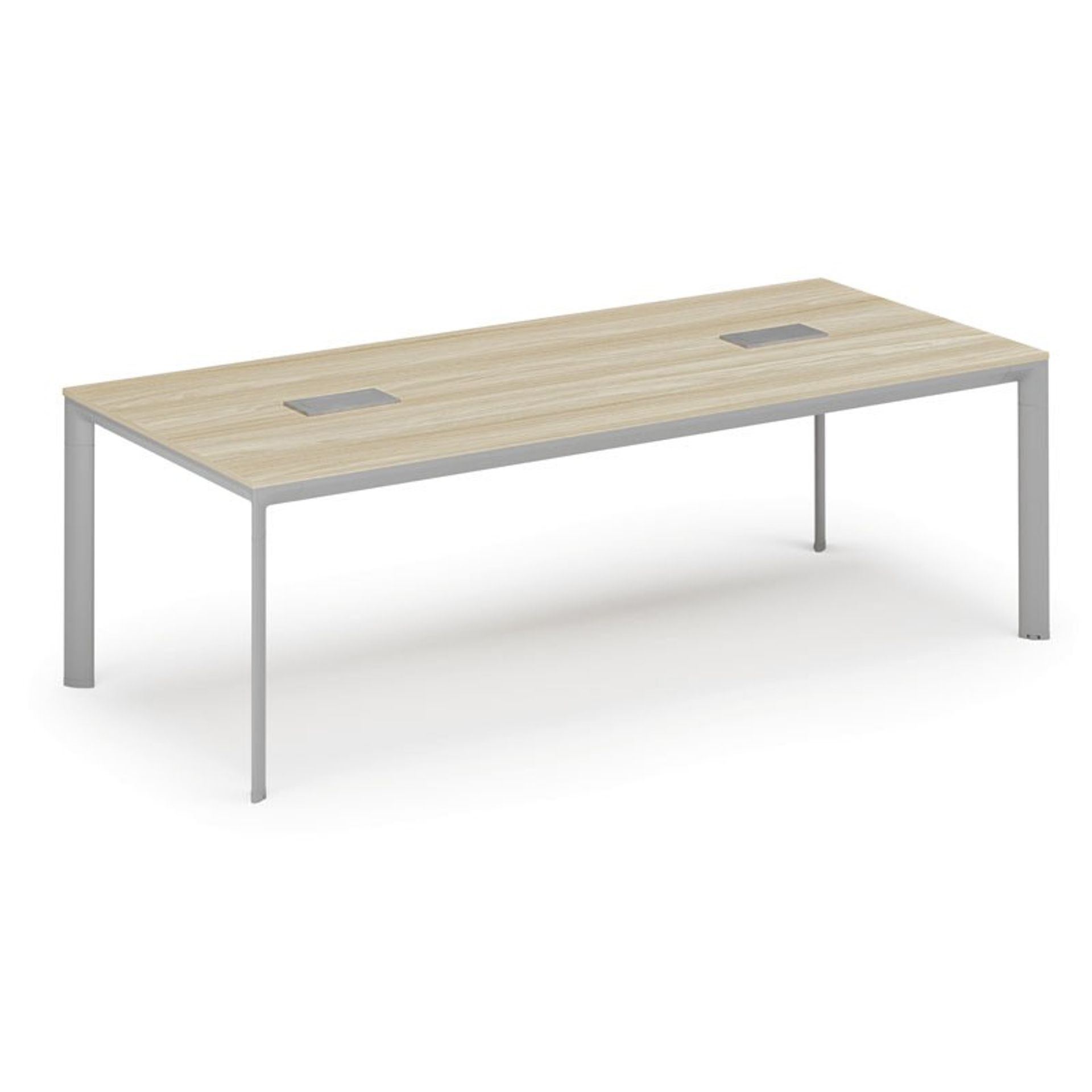 /Meble biurowe/Serie mebli biurowych/Meble biurowe PRIMO GRAY/Biurka PRIMO GRAY/Biurka z metalowymi nogami PRIMO GRAY/Stół konferencyjny PRIMO INVITATION, 240x120 cm, dąb naturalny + 2x port blatowy TYP VI, srebrny