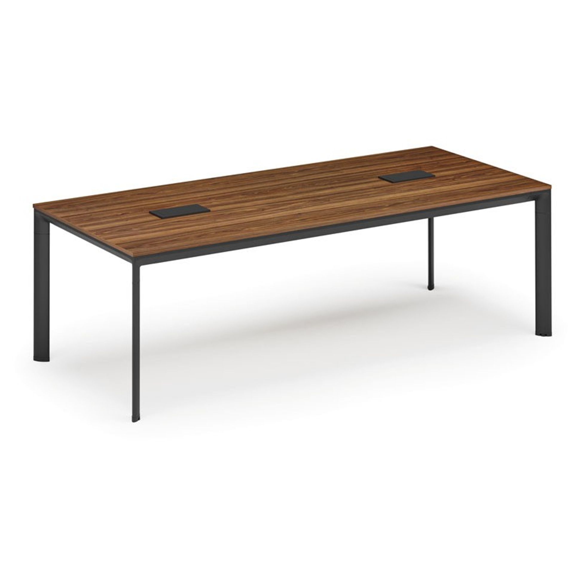 /Meble biurowe/Serie mebli biurowych/Meble biurowe PRIMO WOOD/Biurka PRIMO WOOD/Biurka z metalowymi nogami PRIMO WOOD/Stół konferencyjny PRIMO INVITATION, 240x120 cm, orzech + 2x port blatowy TYP VI, czarny