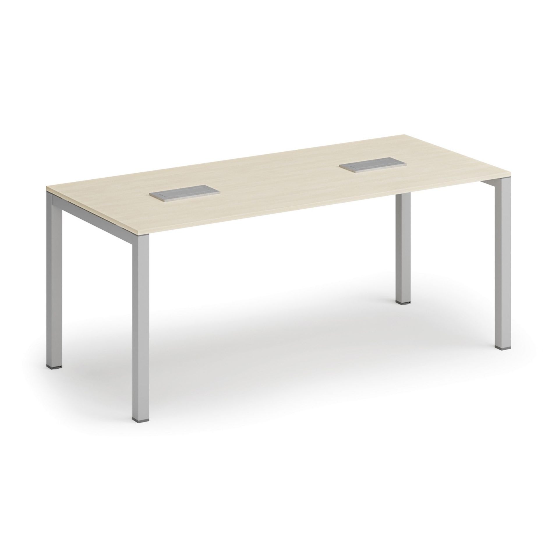 /Meble biurowe/Serie mebli biurowych/Meble biurowe PRIMO GRAY/Biurka PRIMO GRAY/Biurka z metalowymi nogami PRIMO GRAY/Stół konferencyjny PRIMO SQUARE, 180x80 cm, brzoza + 2x port blatowy TYP II, srebrny