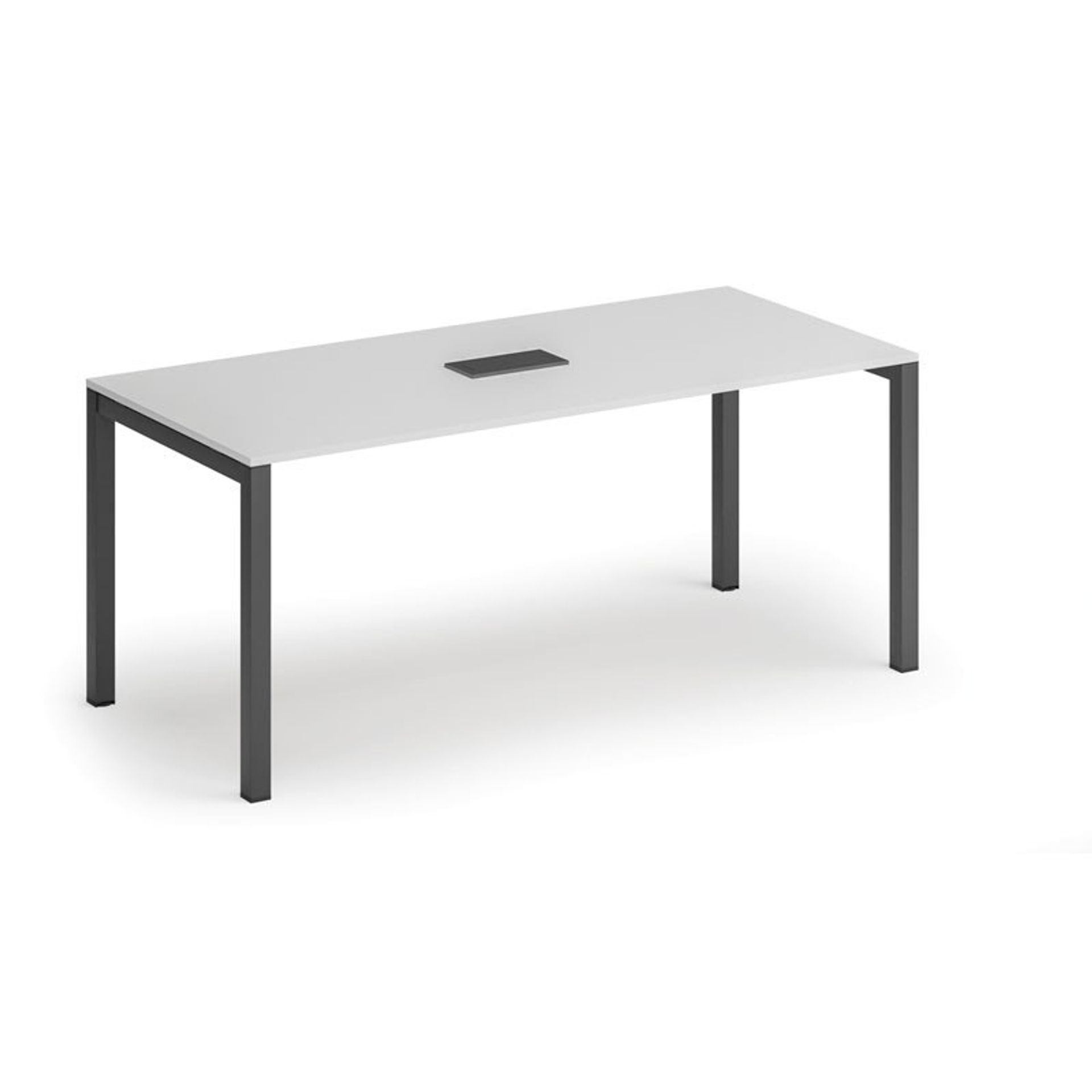 /Meble biurowe/Serie mebli biurowych/Meble biurowe PRIMO GRAY/Biurka PRIMO GRAY/Biurka z metalowymi nogami PRIMO GRAY/Stół konferencyjny PRIMO SQUARE, 180x80 cm, dąb naturalny + port blatowy TYP VI, czarny