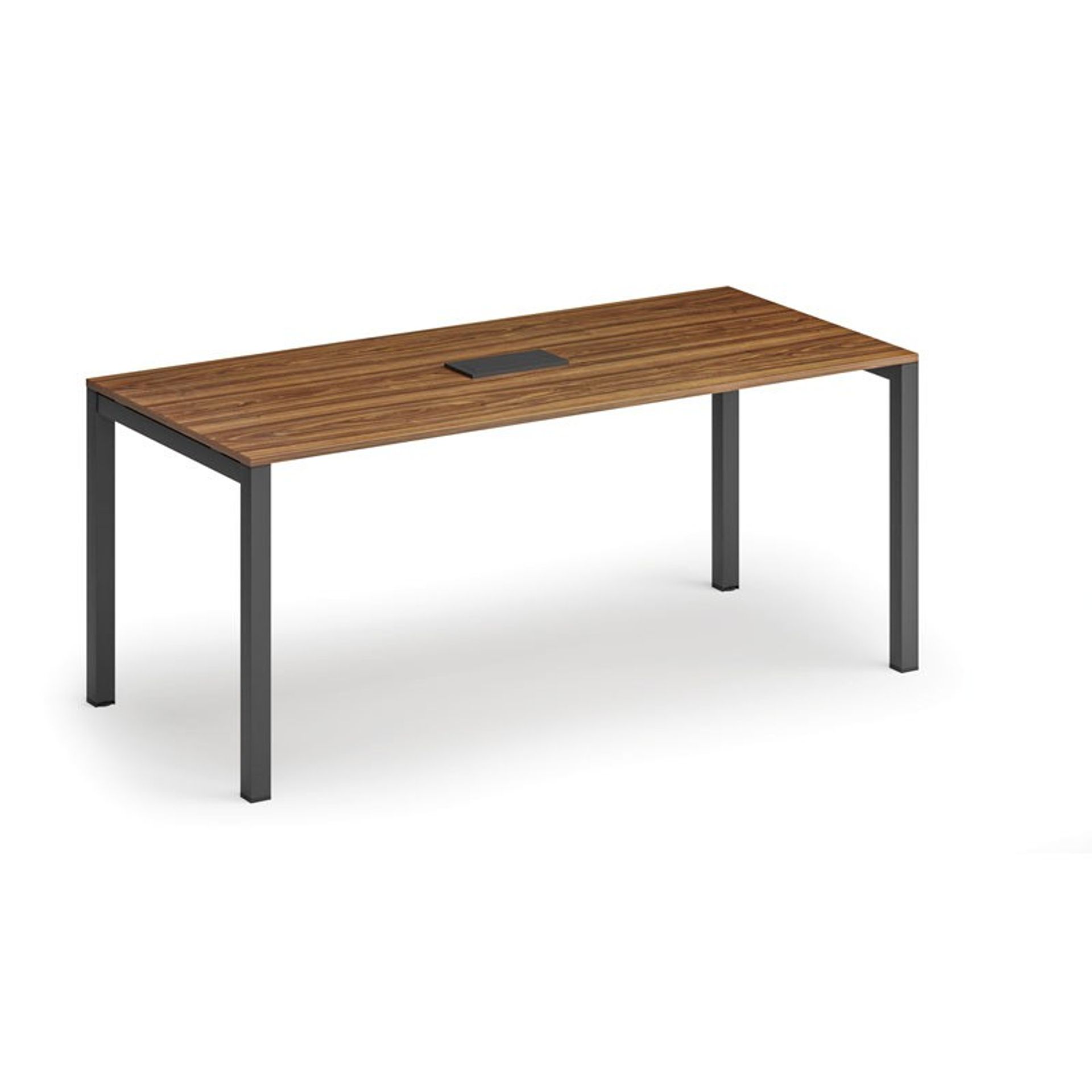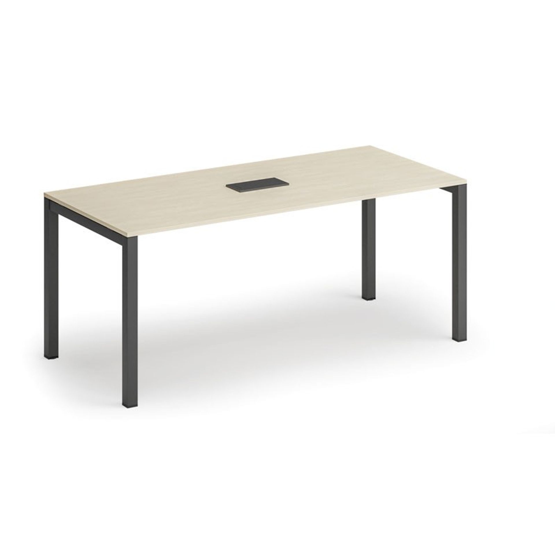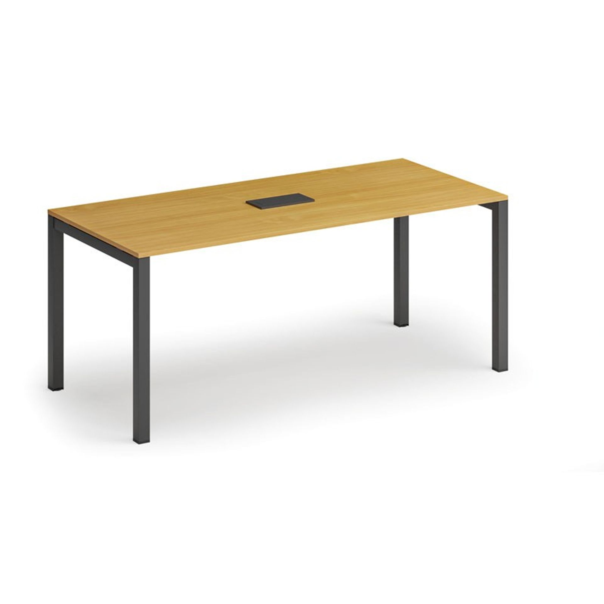Stół konferencyjny PRIMO SQUARE, 180x80 cm, dąb naturalny + port blatowy TYP VI, czarny