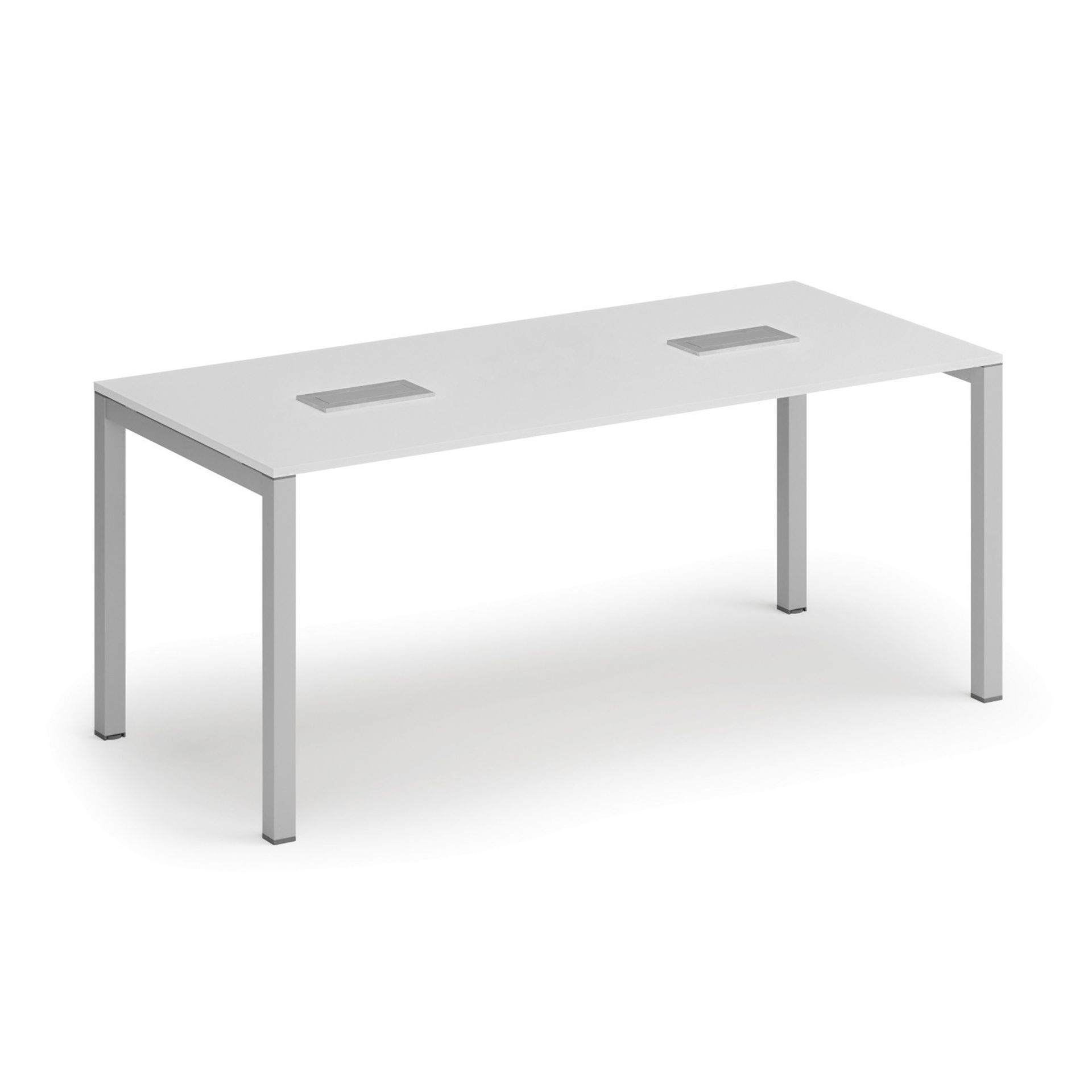 /Meble biurowe/Serie mebli biurowych/Meble biurowe PRIMO GRAY/Biurka PRIMO GRAY/Biurka z metalowymi nogami PRIMO GRAY/Stół konferencyjny PRIMO SQUARE, 180x80 cm, orzech + 2x port blatowy TYP VI, srebrny