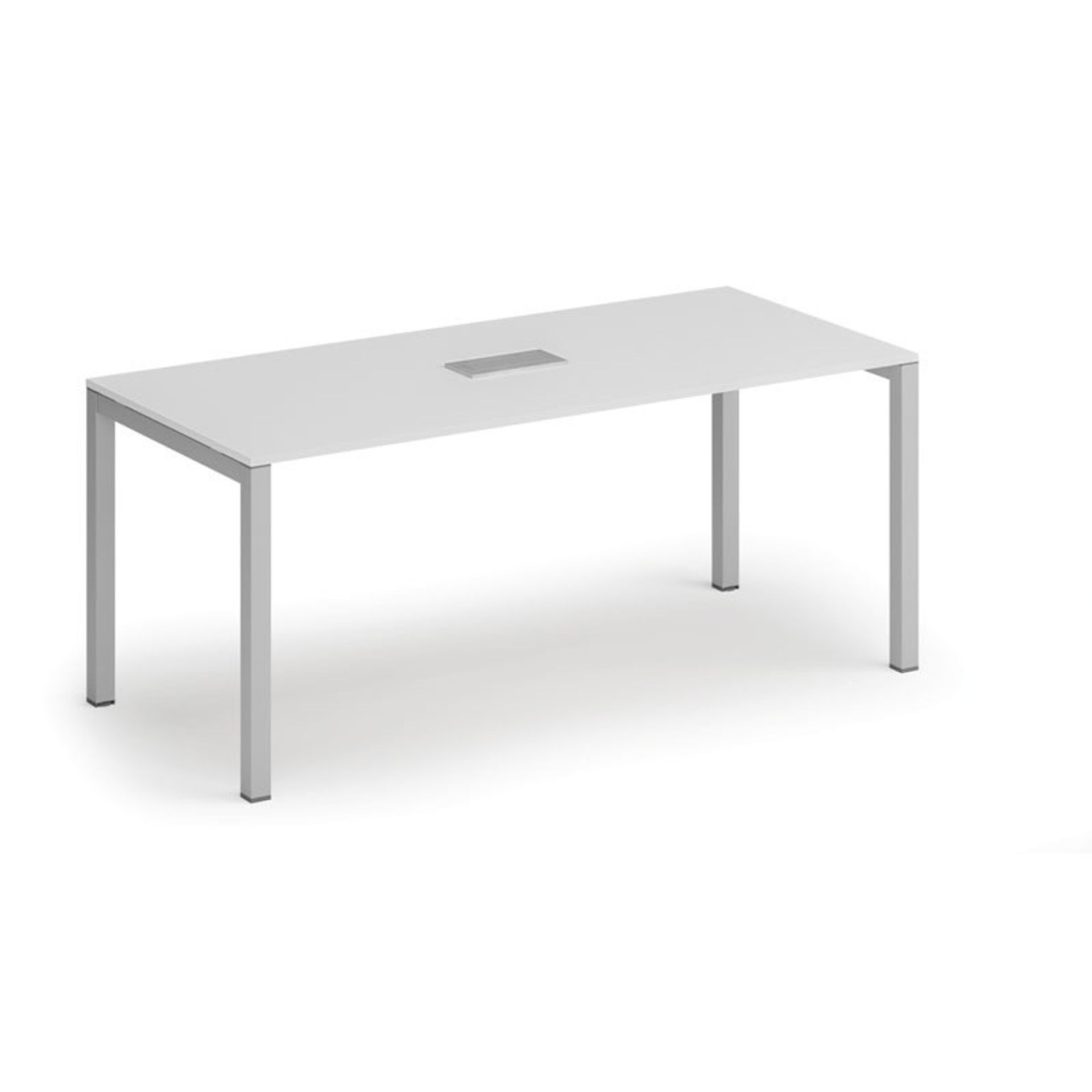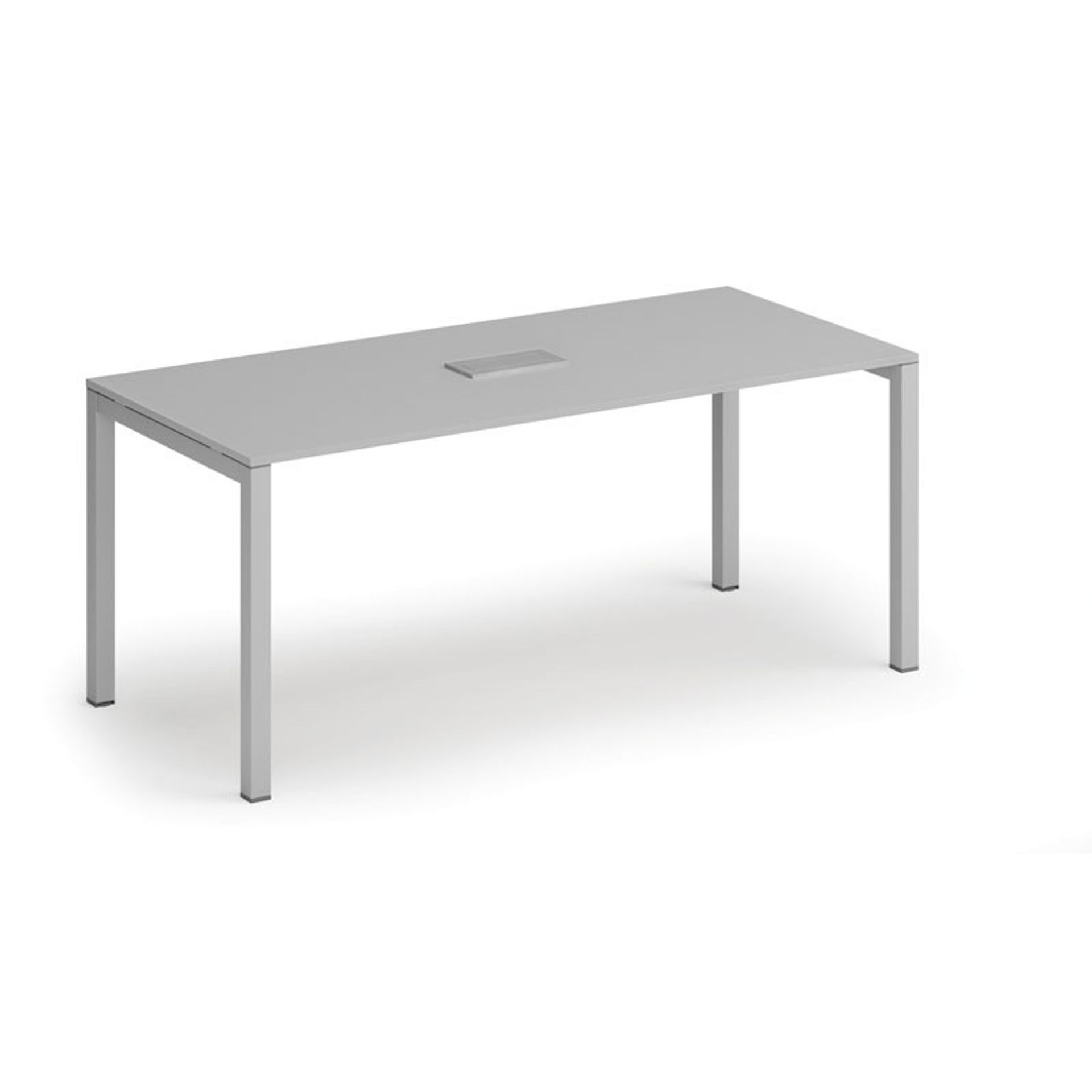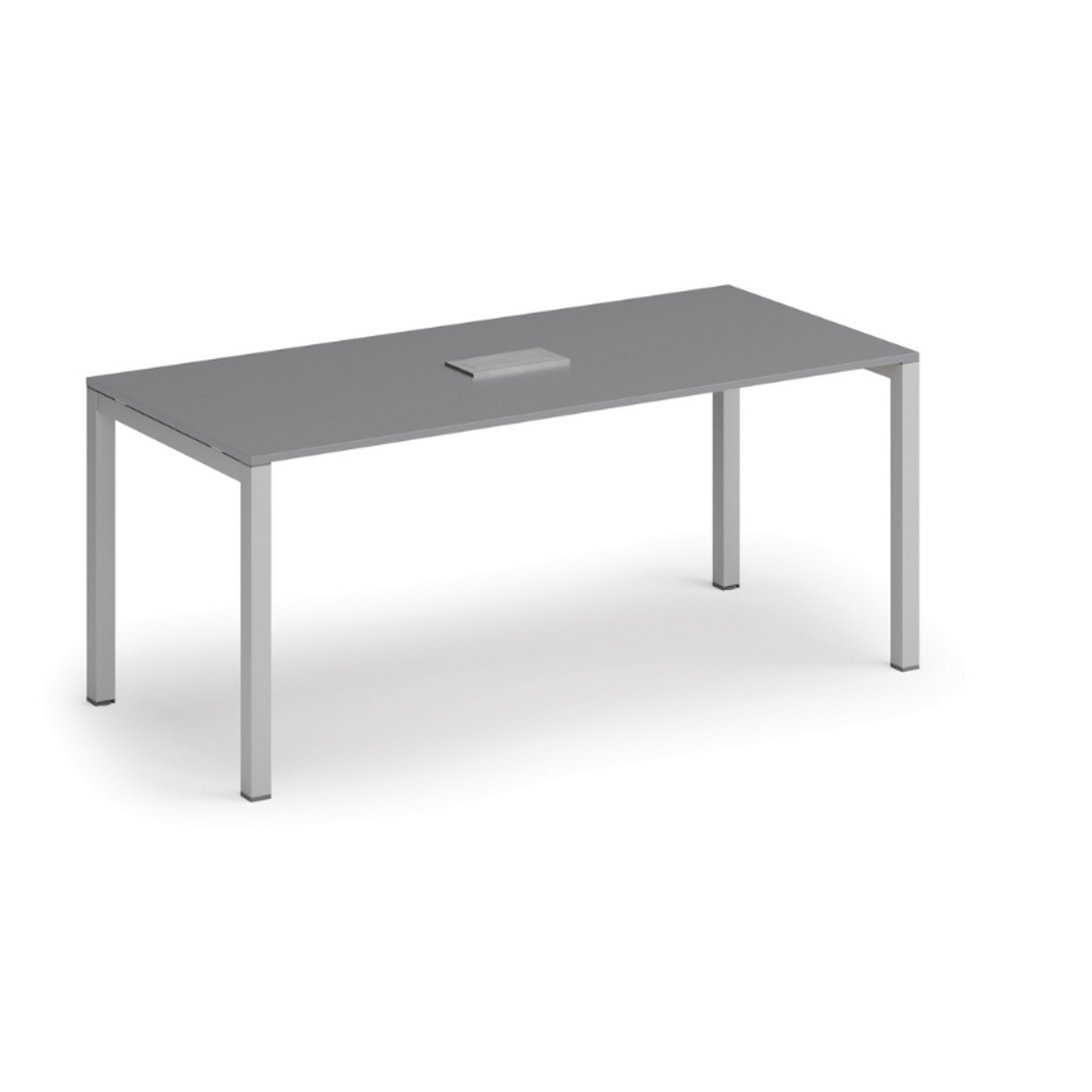 /Meble biurowe/Serie mebli biurowych/Meble biurowe PRIMO GRAY/Biurka PRIMO GRAY/Biurka z metalowymi nogami PRIMO GRAY/Stół konferencyjny PRIMO SQUARE, 180x80 cm, szary + port blatowy TYP VI, srebrny