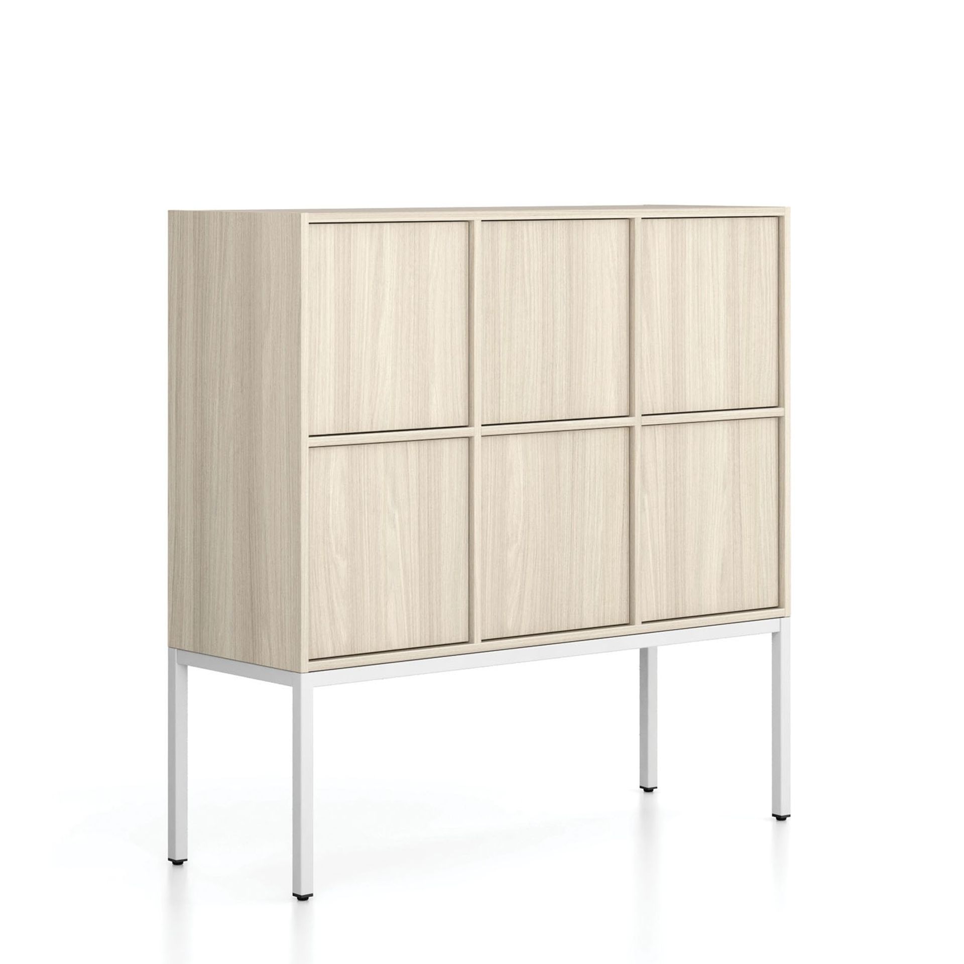 Szafa biurowa FRAME, niska, podstawa biała, 6x drzwi, 1299 x 450 x 1331 mm, PUSH-lock, dąb naturalny