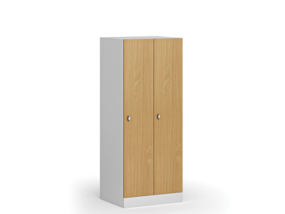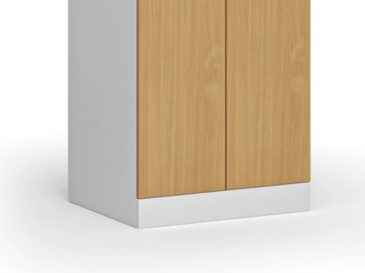 Szafka składa się z 2 sekcji o standardowej szerokości przedziału 300 mm i obniżonej wysokości 1500 mm. Obniżona szafka ubraniowa jest idealna do szatni dziecięcych, pomieszczeń o niskim suficie i poddaszy. Oferuje wszystkie standardowe funkcje wersji klasycznej, tylko w mniejszym formacie.