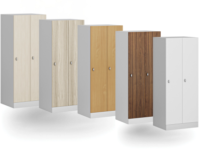 Konstrukcja szafki ubraniowej jest zawsze lakierowana wysokiej jakości lakierem proszkowym w odcieniu RAL 7035 (szary). Lakier zapewnia trwałą, stabilną kolorystycznie ochronę przed korozją, ścieraniem oraz ułatwia utrzymanie. Znormalizowany kolor RAL zapewnia, że zawsze kupujesz ten sam odcień przy kolejnych zakupach. Drzwi z laminowanej płyty wiórowej można wybrać w popularnych dekorach drewnianych oraz nowoczesnych kolorach, które łatwo dopasować do wnętrza.