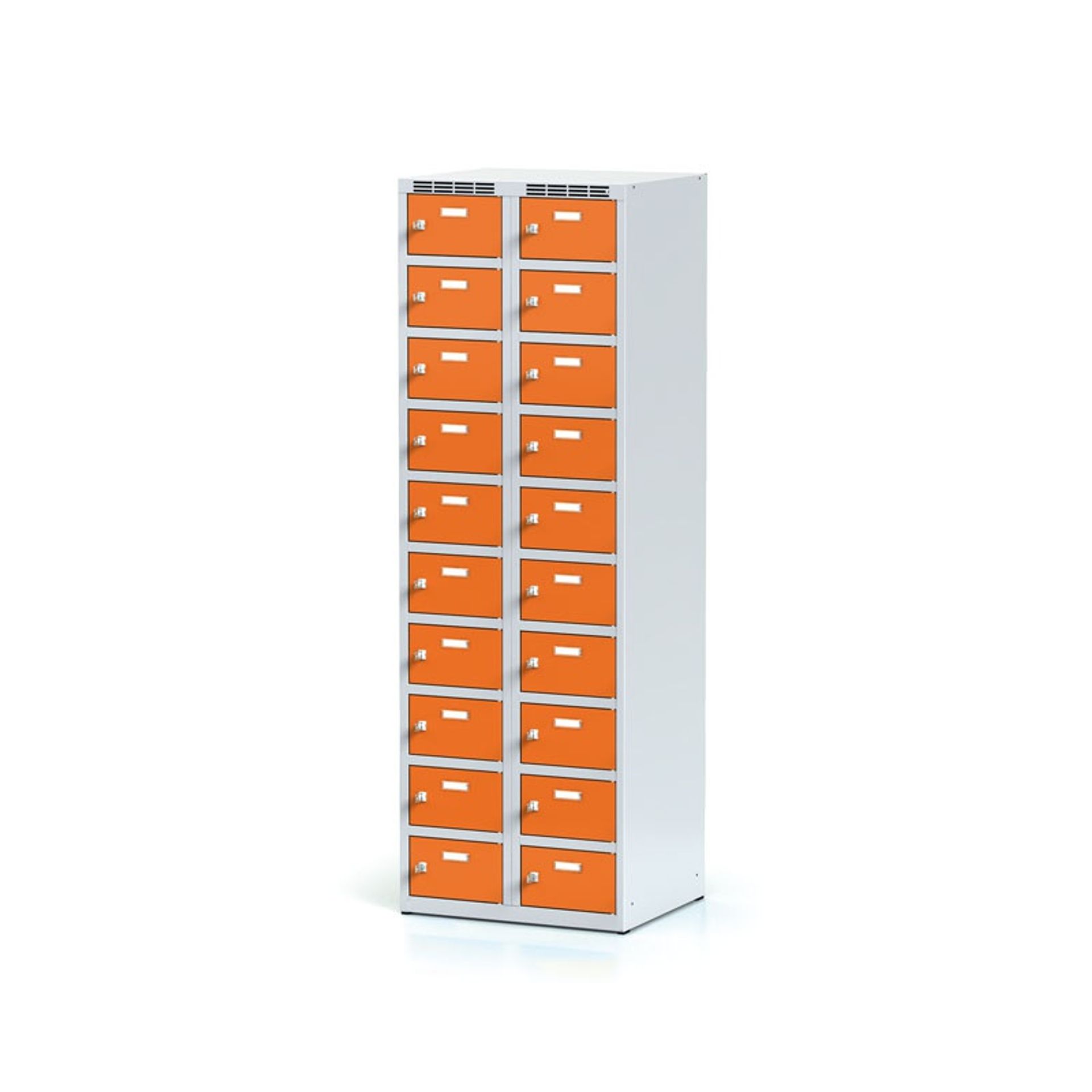 Szafka o szerokości 300 mm składa się z 20 zamykanych skrytek. Każdy boks zapewnia wystarczającą ilość miejsca do przechowywania rzeczy osobistych, plecaków lub toreb. To ekonomiczne, a jednocześnie bezpieczne i zamykane rozwiązanie idealnie sprawdza się wszędzie tam, gdzie trzeba zaoszczędzić miejsce i nie ma potrzeby wieszania dłuższych ubrań.