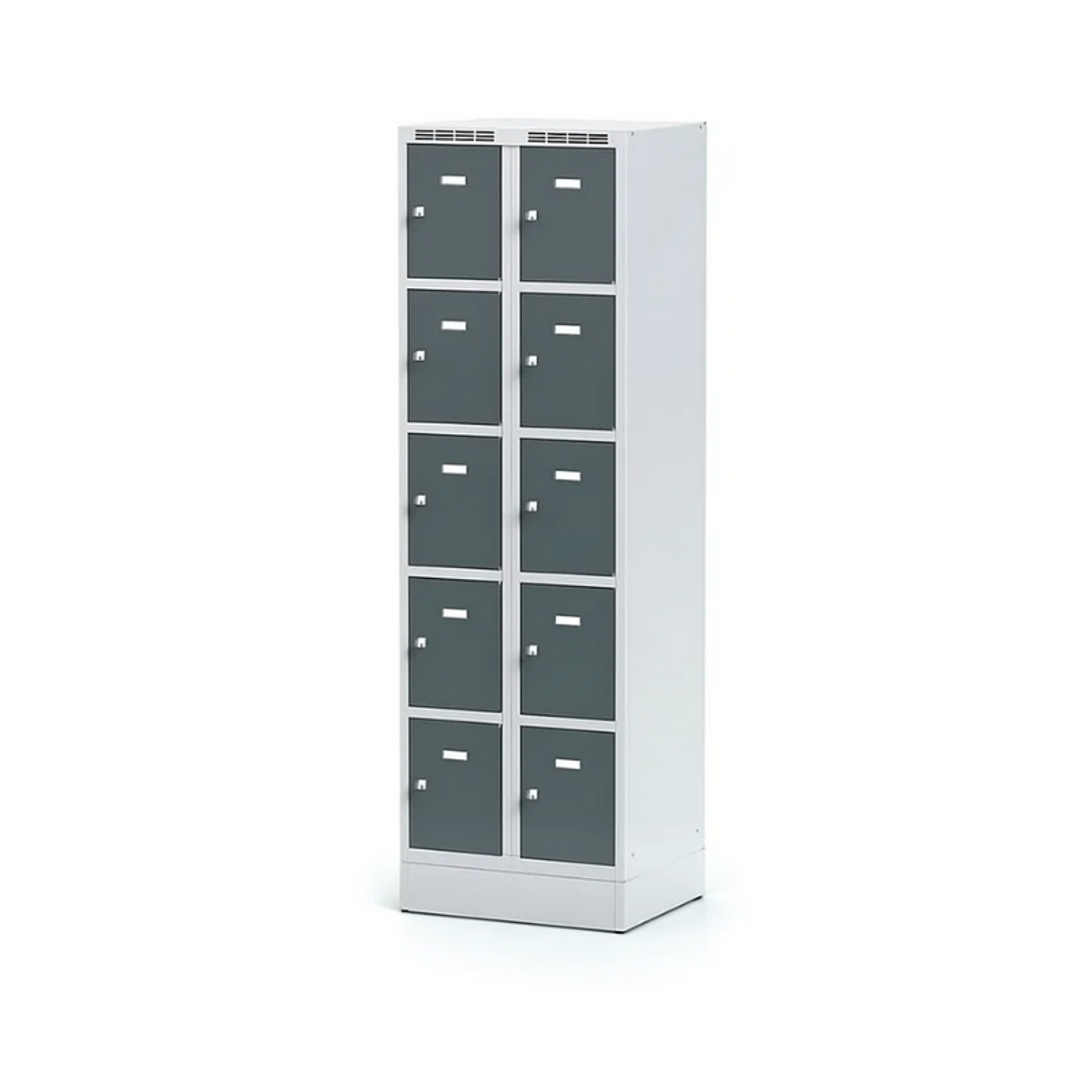 Szafka skrytkowa S6 na cokole, 10 schowków, 1920 x 600 x 500 mm, zamek cylindryczny, drzwi czerwone