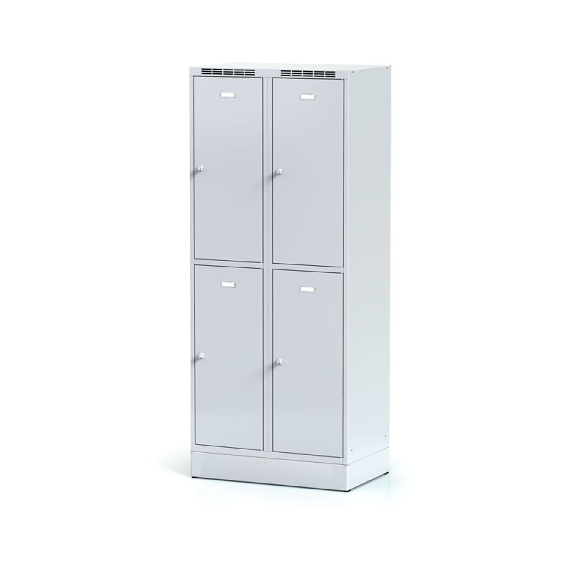 Szafka skrytkowa S6 na cokole, 4 schowki, 1920 x 800 x 500 mm, zamek cylindryczny, drzwi szare
