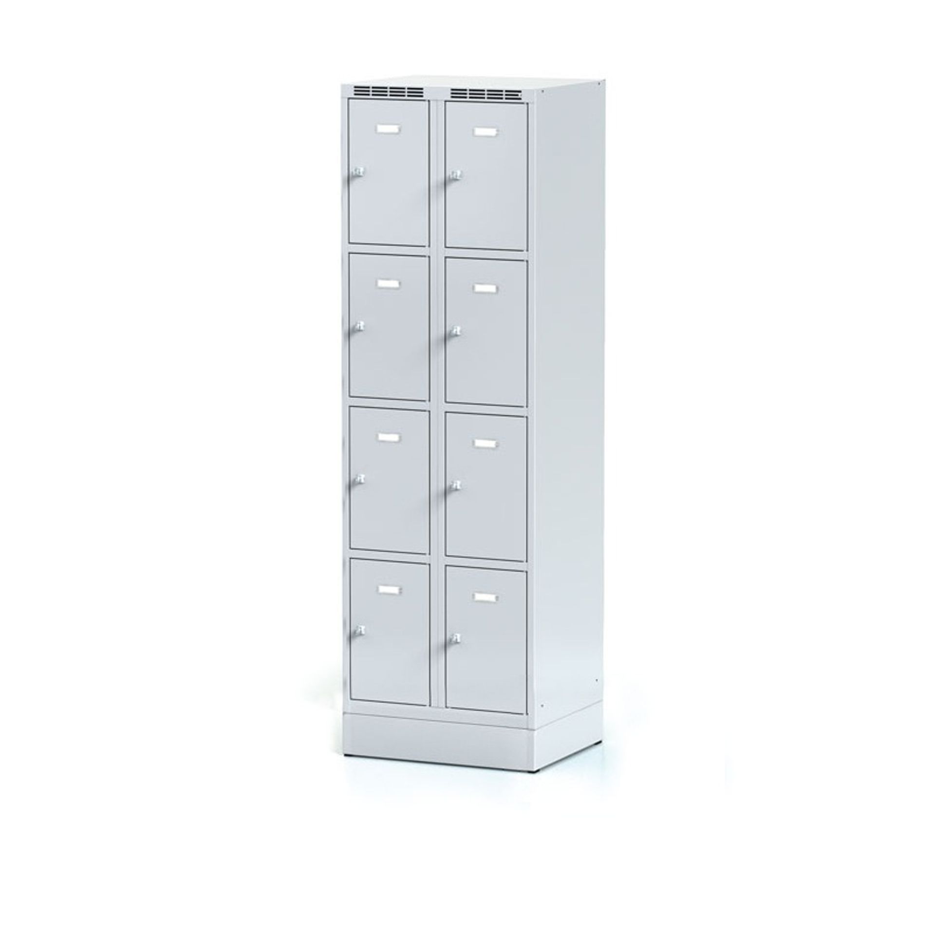 Szafka skrytkowa S6 na cokole, 8 schowków, 1920 x 600 x 500 mm, zamek cylindryczny, drzwi niebieskie