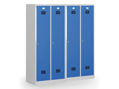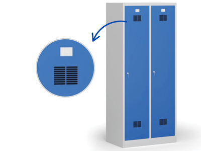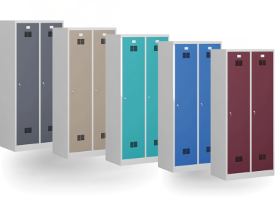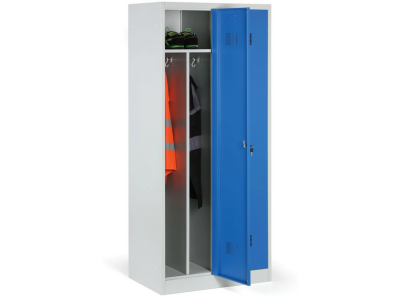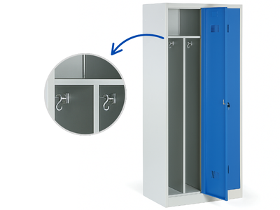 Szafka składa się z 2 przedłużonych sekcji o szerokości do 400 mm, które zapewniają więcej miejsca niż standardowe wersje. Ponadto każda sekcja jest oddzielona solidną przegrodą, co ułatwia rozdzielenie odzieży cywilnej od roboczej. Większa szerokość zapewnia wygodne przechowywanie przedmiotów o większych gabarytach.
