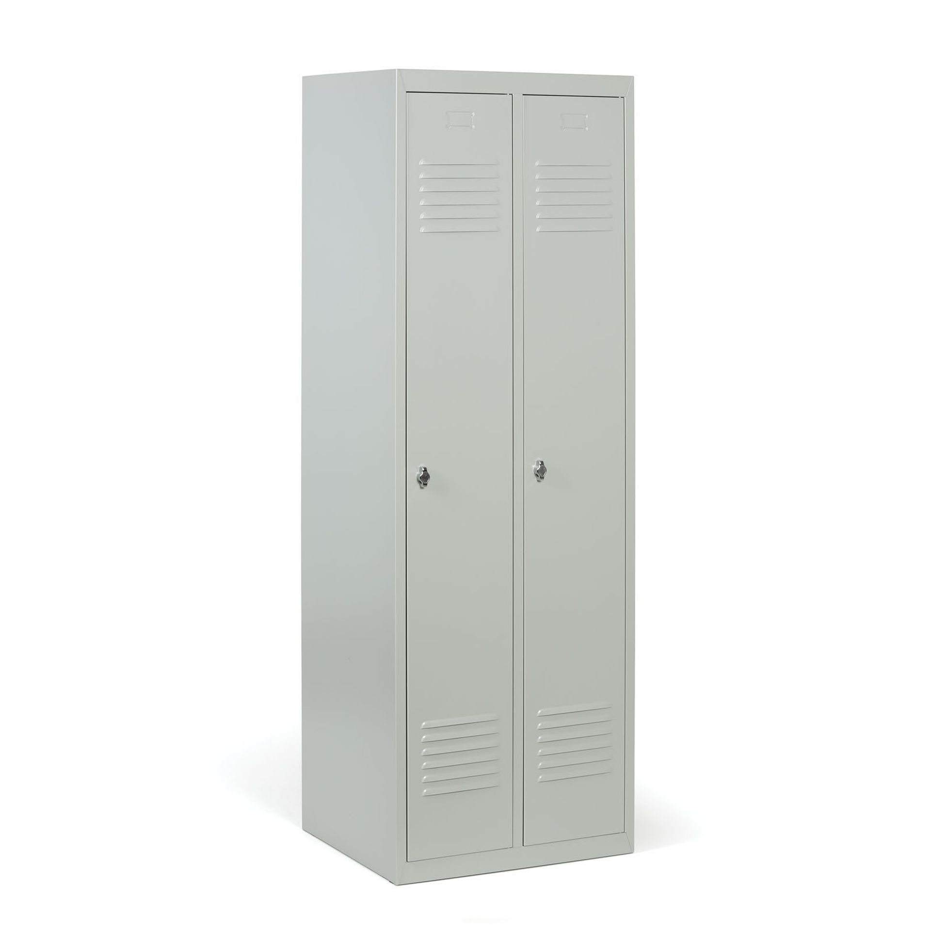 Szafka składa się z 2 oddzielnych sekcji o standardowej szerokości przedziału 300 mm. Ten klasyczny typ szafek jest najczęściej wybierany przez szkoły, firmy i obiekty sportowe. Oferuje wystarczającą ilość miejsca na rzeczy osobiste i odzież.