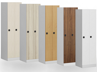 Konstrukcja szafki ubraniowej jest zawsze lakierowana wysokiej jakości lakierem proszkowym w odcieniu RAL 7035 (szary). Lakier zapewnia trwałą, stabilną kolorystycznie ochronę przed korozją, ścieraniem oraz ułatwia utrzymanie. Znormalizowany kolor RAL zapewnia, że zawsze kupujesz ten sam odcień przy kolejnych zakupach. Drzwi z laminowanej płyty wiórowej można wybrać w popularnych dekorach drewnianych oraz nowoczesnych kolorach, które łatwo dopasować do wnętrza.
