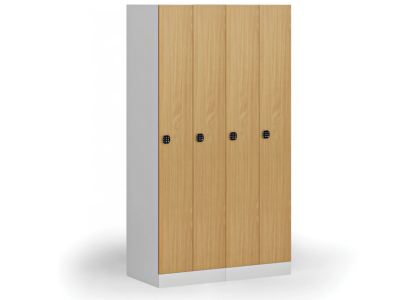 Całometalowa szafka z laminowanymi drzwiami to elegancki kompromis – łączy w sobie maksymalną wytrzymałość stalowej konstrukcji (0,6 mm) z reprezentatywnością drewna.