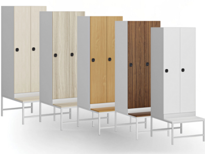 Połączenie ławki o wysokości 375 mm i cokołu o wysokości 100 mm przymocowanego do korpusu szafy łączy w sobie ochronę termiczną i wygodne siedzenie. Cokół poprawia izolację termiczną od podłoża, zapobiega osadzaniu się kurzu i wilgoci, a ławka zapewnia wygodę podczas przebierania się bezpośrednio przy szafce.