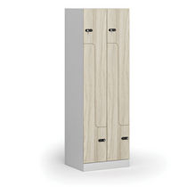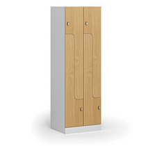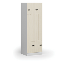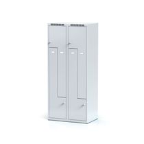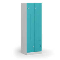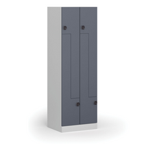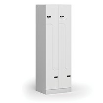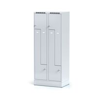 Szafy z drzwiami w kształcie litery Z są wyposażone w zamek bębenkowy lub obrotowy. Wraz z kolorem możesz również wybrać, czy chcesz, aby Twoja szafka była bez podstawy, na cokole lub na nóżkach.