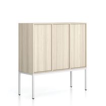 Aby umieścić teczki lub obiekty wystawowe, przestrzeń do przechowywania można powiększyć za pomocą niskich i wysokich otwartyh regałów FRAME. Większe przedmioty, które chcesz schować, znajdą swoje miejsca w zamykanych szafkach i szafach. Płaszcze i kurtki można następnie schować w szafie z haczykami. Doskonałym wyborem, zwłaszcza do sal konferencyjnych i prezentacyjnych, może być połączenie szafki z miejscem na telewizor lub górną część z zamykanym zawiasem.