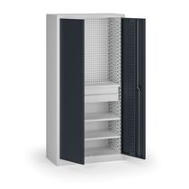 Do przejrzystego przechowywania narzędzi i materiałów można wykorzystać szufladowe szafki warsztatowe. Możesz wybierać spośród szerokiej gamy wymiarów, zestawień kolorystycznych oraz liczby i wielkości szuflad. Szufladowe szafki warsztatowe oferują wiele kombinacji szuflad i półek, dzięki czemu każdy znajdzie idealną konfigurację dla swojego wyposażenia.